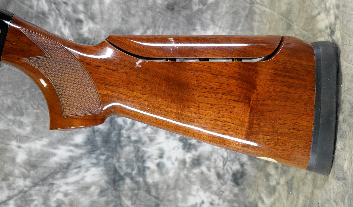 Pre-Owned Beretta Model 303 Field 12GA with 28″ Mobil choked barrel, 3″ chamber with parallel game rib. Black action, finish has minor wear and scratches. Factory Beretta 303 Monte Carlo stock has been fitted to action with Graco adj. comb and shortened LOP (13 3/4″). Handling marks, minor wear. Consignment, ineligible for trade-ins.