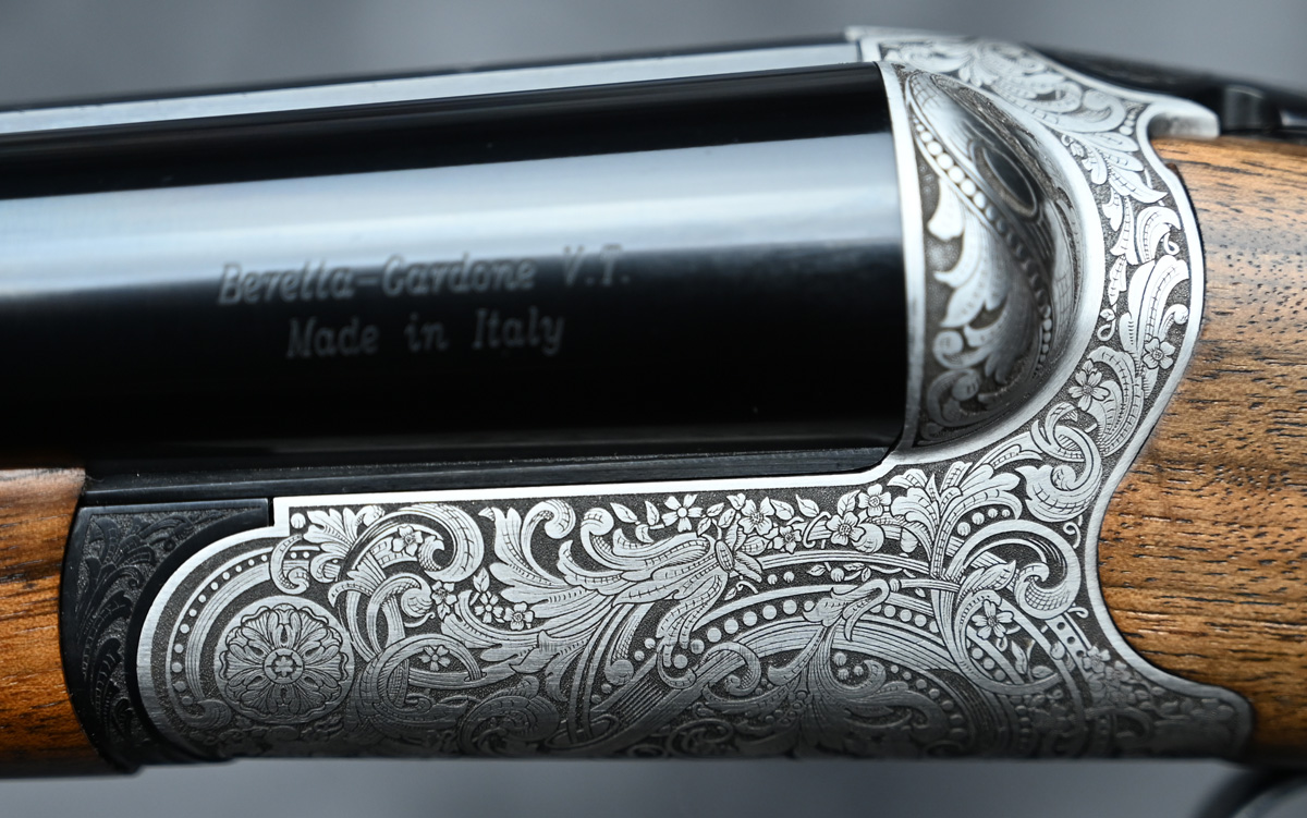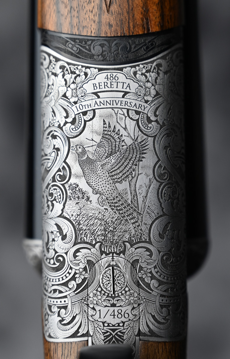 New Beretta 486 10th Anniversary Parallelo Field 12ga. Limited edition 1 of 486. Features flush choke tube 28″ barrels with flat game rib. Engraved receiver featuring scroll patterns and game scenes. Highly figured right hand English stock with Splinter forend. Comes in factory presentation case.
