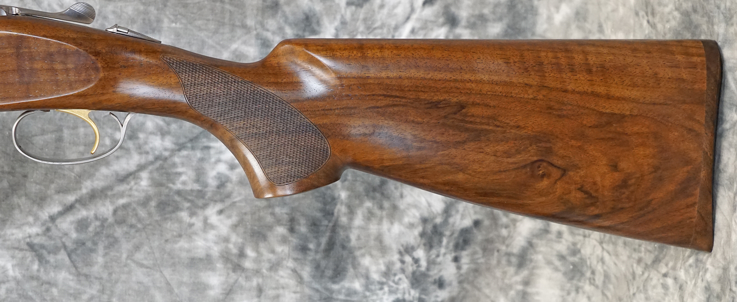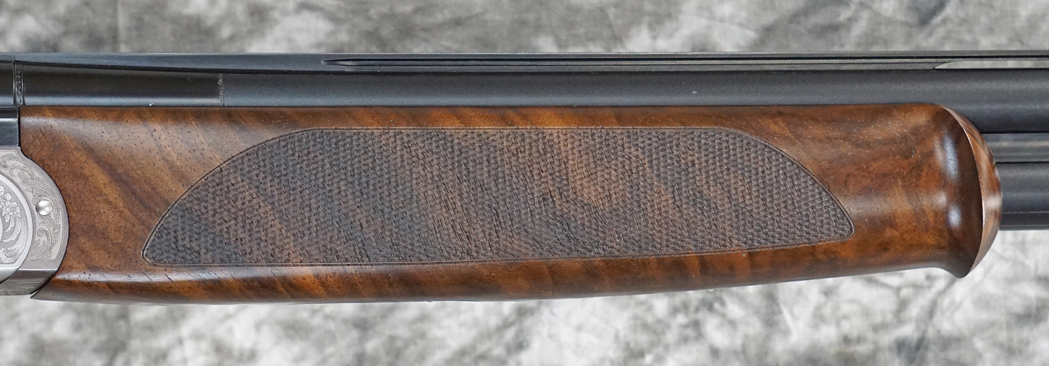 New Beretta 687 Silver Pigeon V Sporting 12GA with 30″ factory HP choked barrels with flat parallel field rib, solid side-ribs. Nickel finished action with full coverage scroll engraving. Factory pistol grip field stock to removable wood butt plate, schnabel forearm. Includes factory case, chokes and tools.