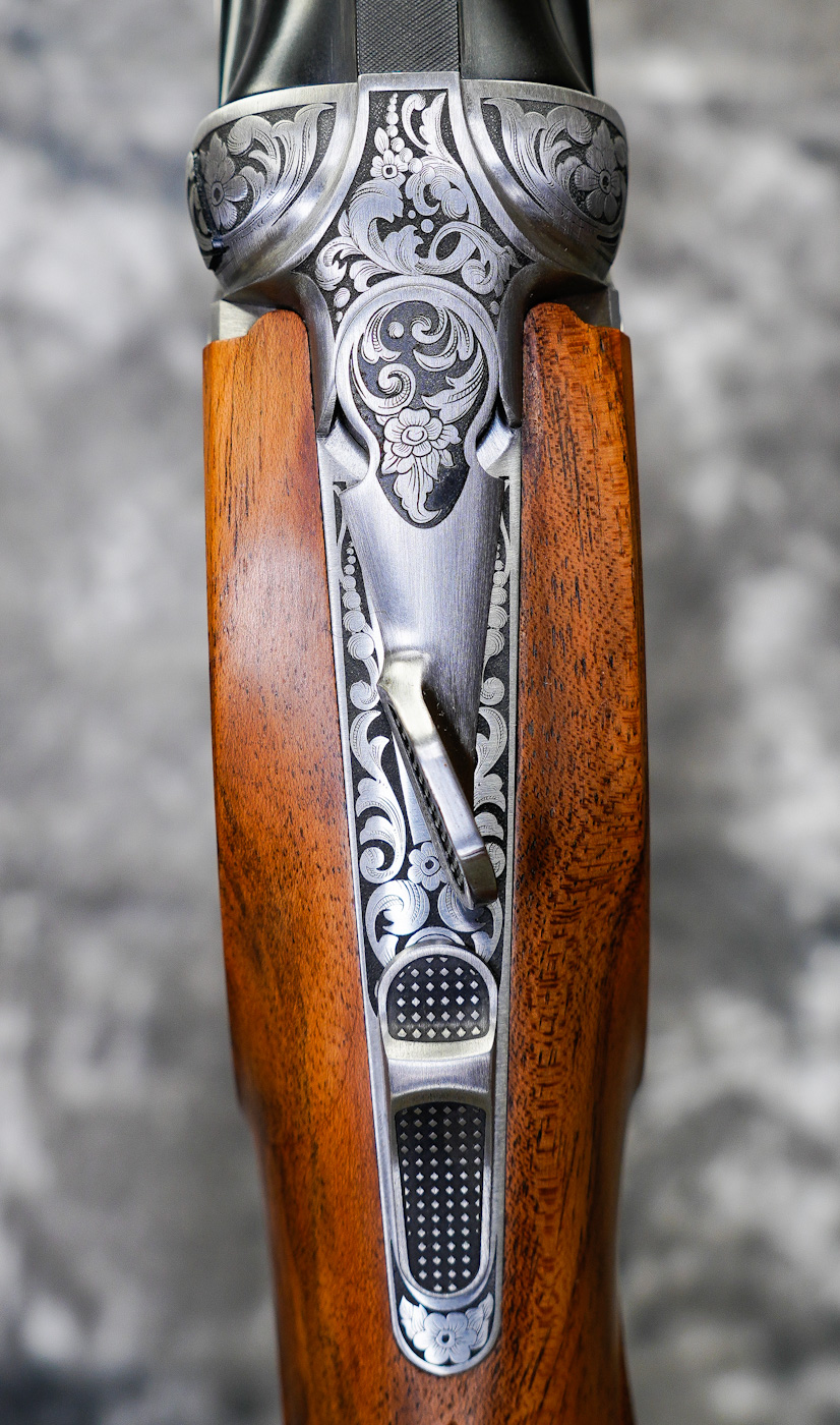 New Beretta DT-11 EELL Olympic Trap or Pigeon 12GA with 30″ fixed choke (IM/F) barrels, parallel trap rib with 18.4mm Steelium bore barrels. Coin finished action with sideplates featuring English scrolls and florals. Factory removable, non-selective adjustable trigger. Factory adj. comb Pigeon style stock with right-hand palmswell and round forearm. Includes factory case, tools. Manufactured by Special Order. Call 626-633-1002 for price.