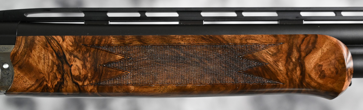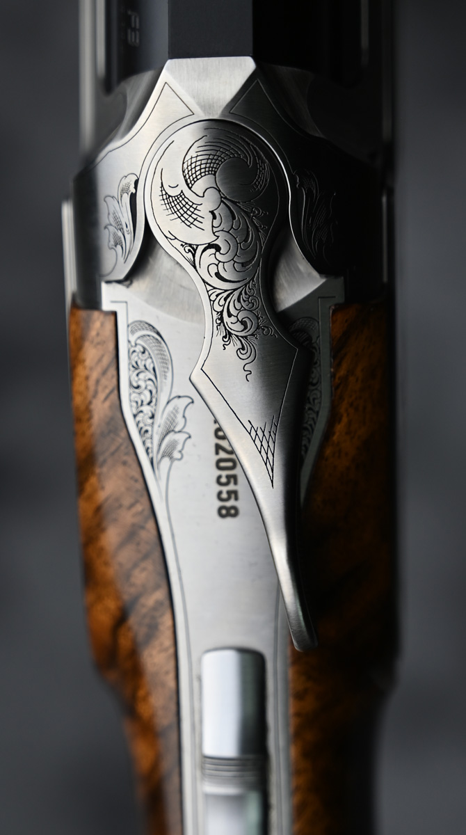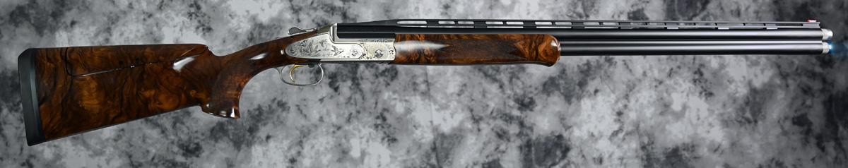 New Blaser F3 Vantage Sporting 12ga. Features factory extended choke tube 32″ barrel with fixed mid rib. Engraved side plate receiver featuring upland and waterfowl games scenes complimented by elegant scroll pattern. Highly figured right hand Sporting stock and Schnabel forend. Comes in factory leather trim case.