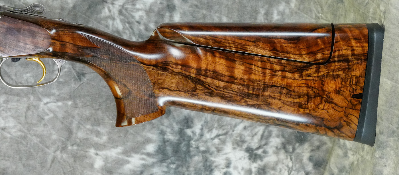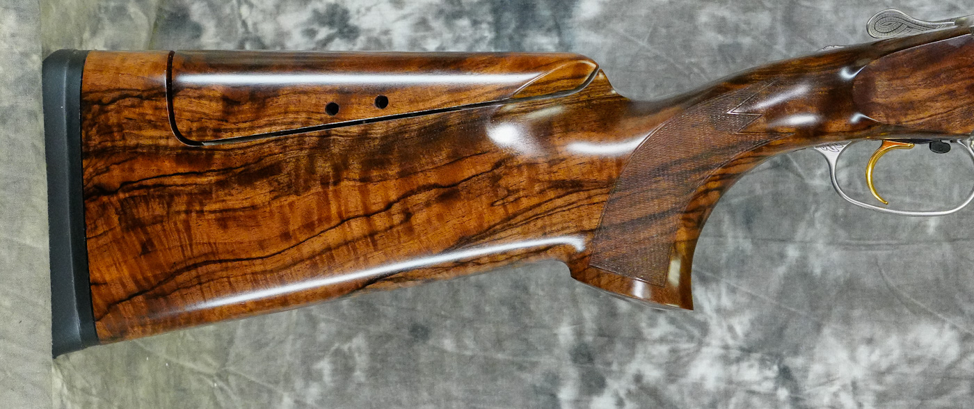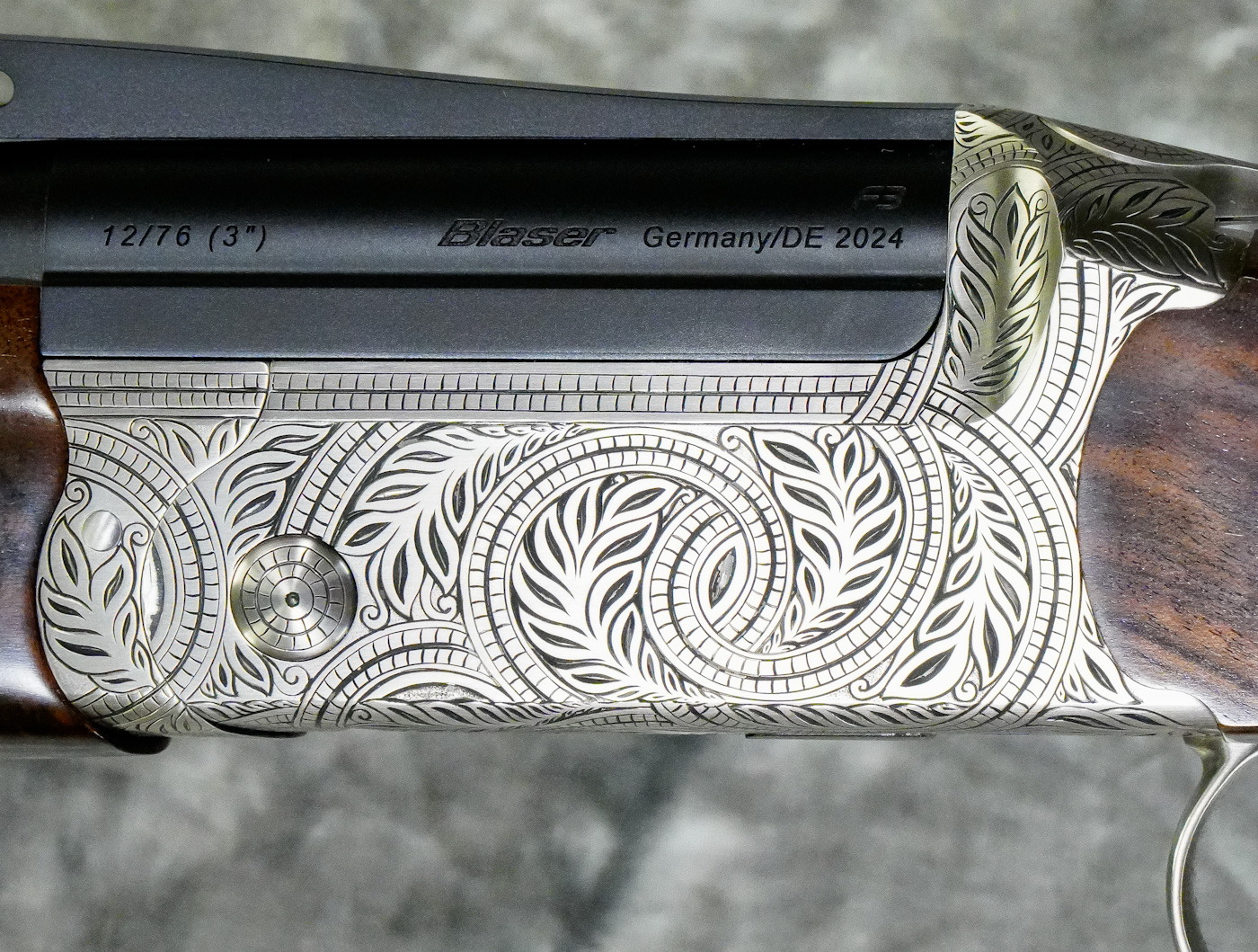 New Blaser F3 Vantage Black Leaf Scroll Sporting 12GA with 32″ factory ramped rib choke tubed barrels, integrated weight system. Silver nitride finished action featuring hand-engraved “Black Leaf” motif with hand-engraved ribbons and floral patterns by Kaufmann. Factory adj. comb sporting stock with right-hand palmswell, schnabel forearm. Includes factory case, chokes and tools. Call 626-633-1002 for pricing.