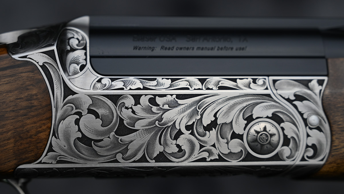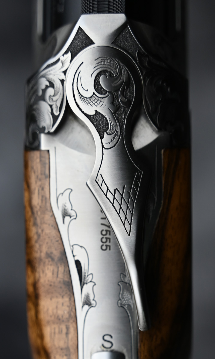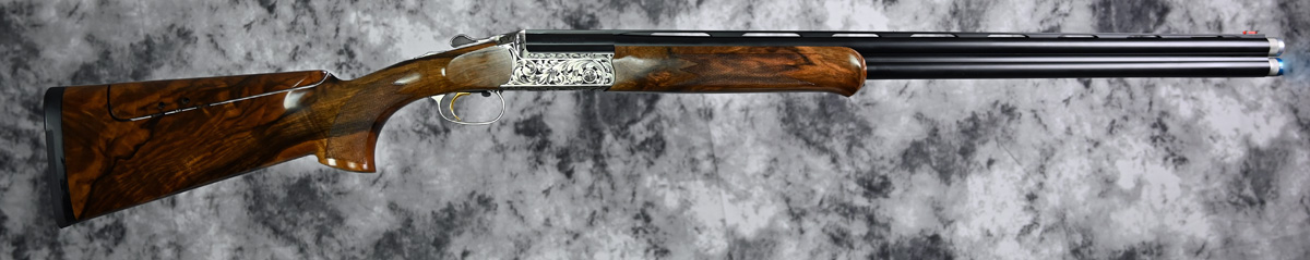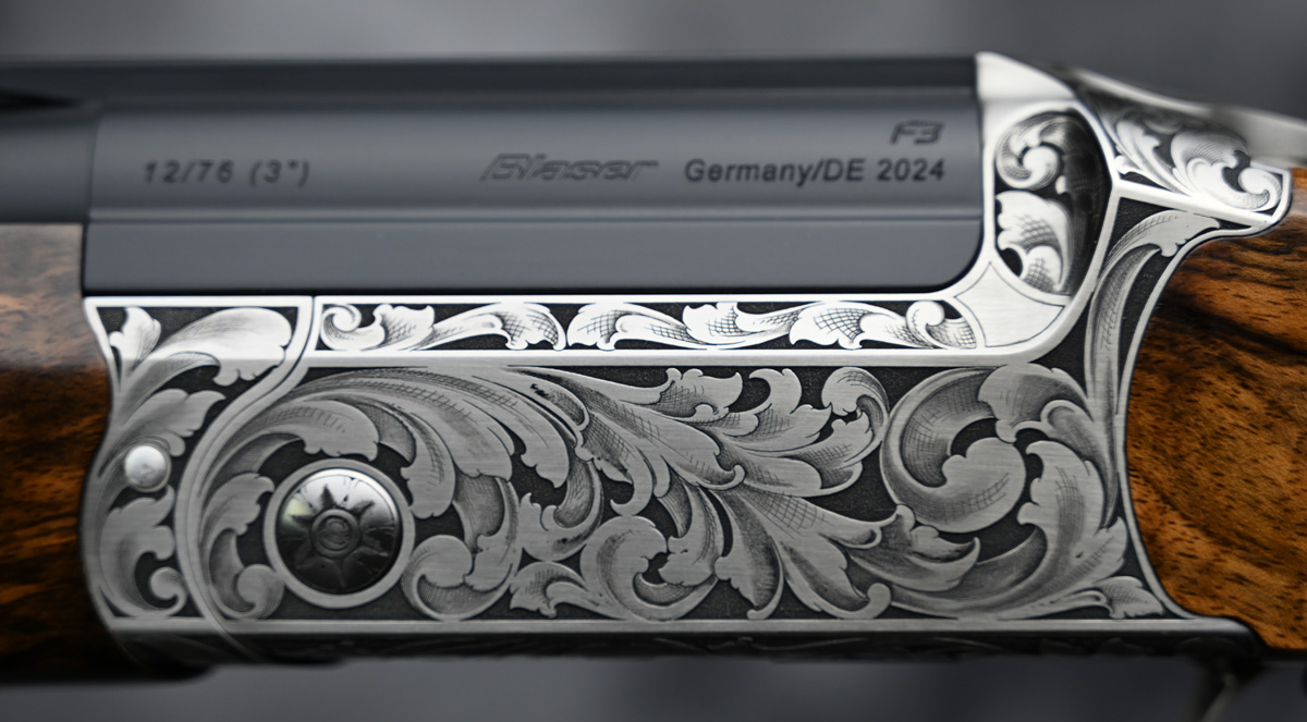 New Blaser F3 “Blaser Scroll” Sporting 12ga. Features factory extended choke tube 32″ barrels with flat sporting rib. Engraved receiver featuring deep relief scroll pattern with fixed selectable trigger. Outstanding right handed Sporting stock with adjustable comb and Schnabel forend. Comes in factory leather trim case.