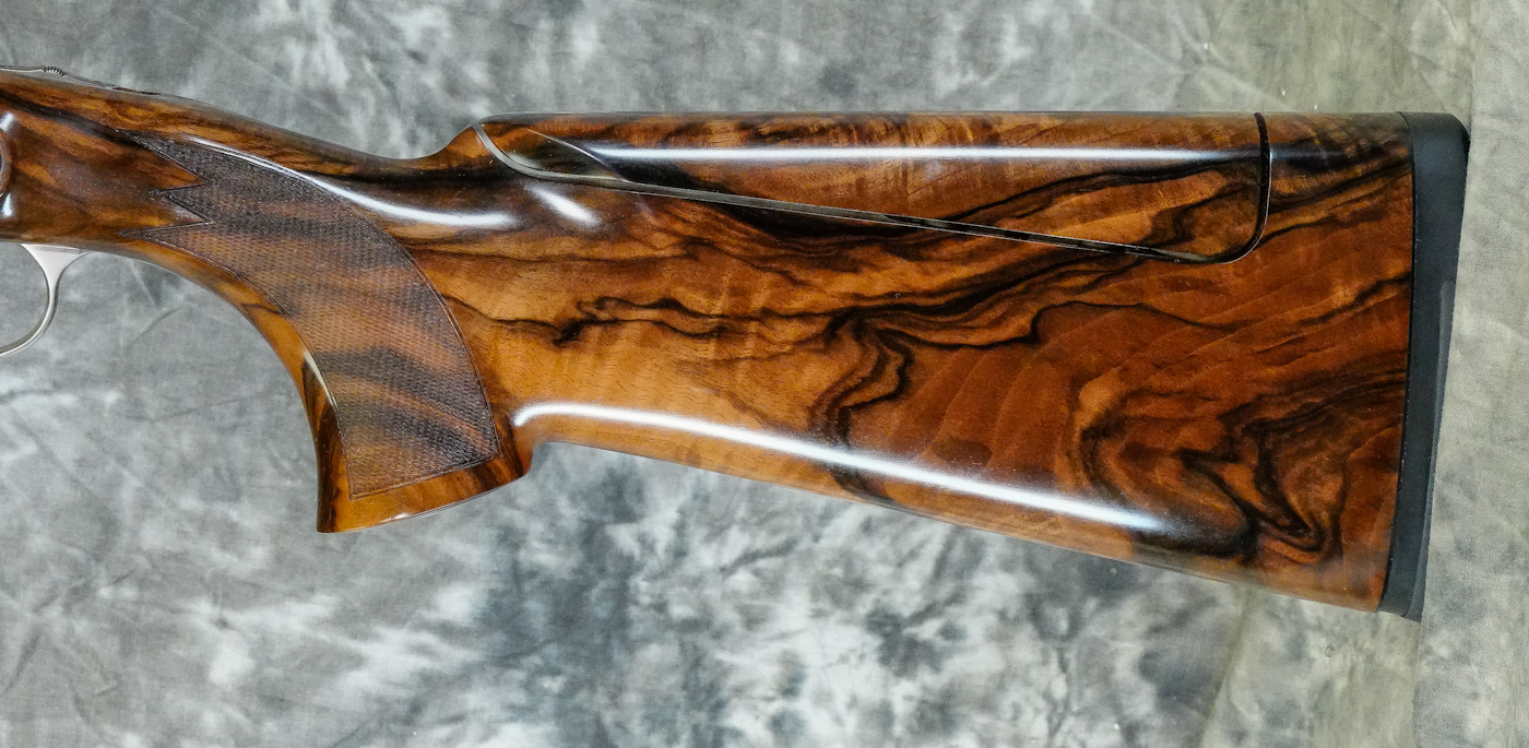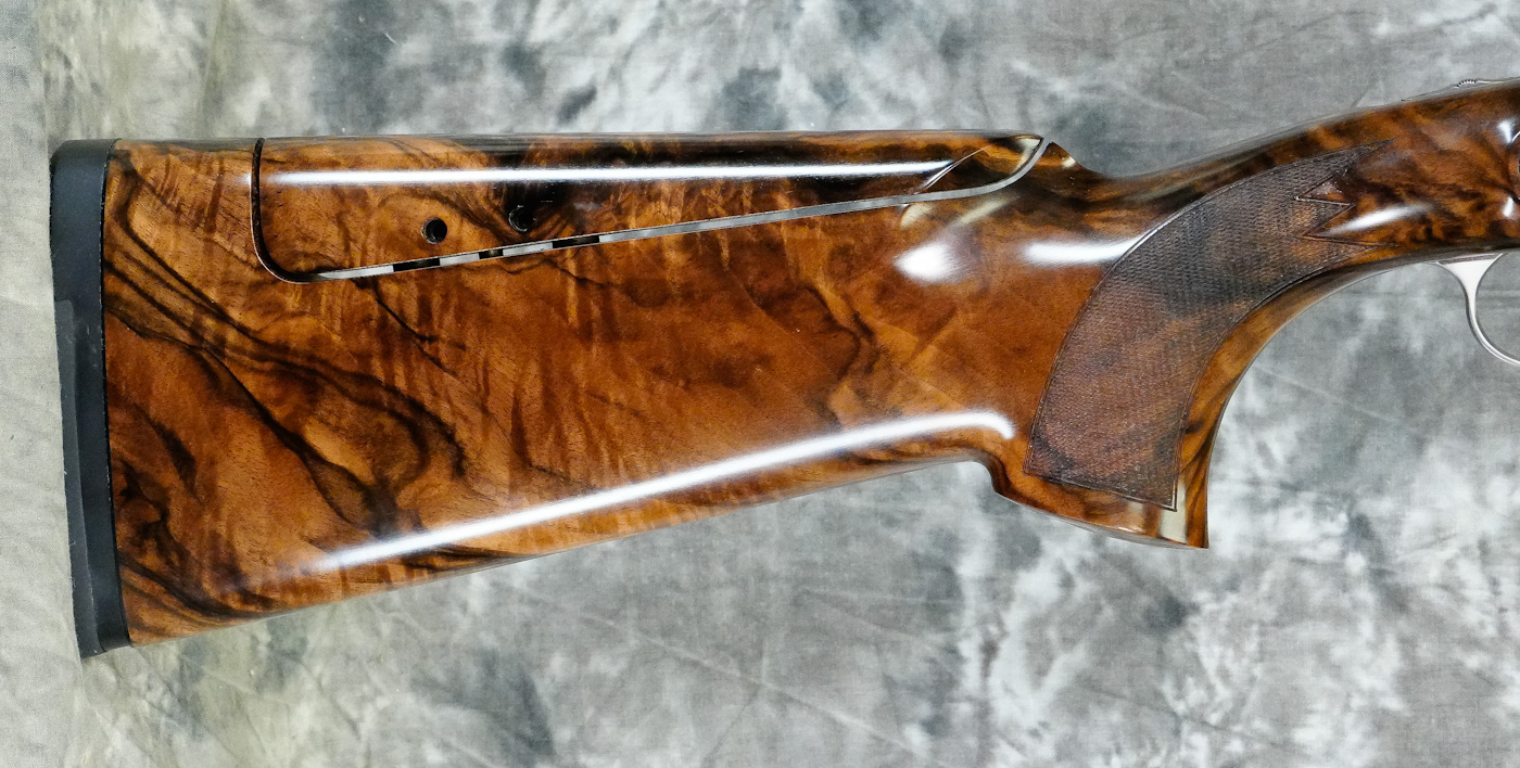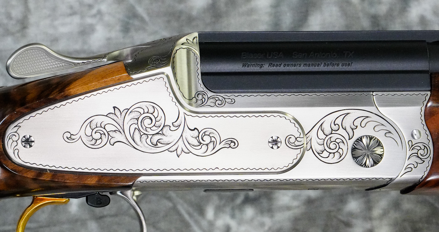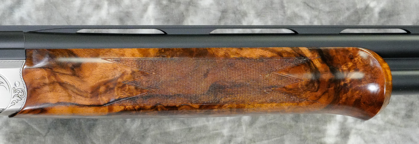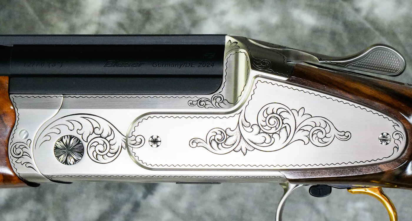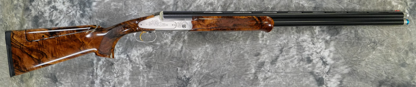 New Blaser F3 Custom Grade Competition Sporting 12GA with 32″ factory choke tubed, flat rib barrels with integrated weight system. Silver nitride finished action featuring sideplates with acanthus scrolls and borders, adj. trigger, selector. Highly figured upgraded factory pistol grip stock, factory adj. comb with right-hand palmswell and schnabel forearm. Includes factory case, chokes and tools. Call 626-633-1002 for pricing.