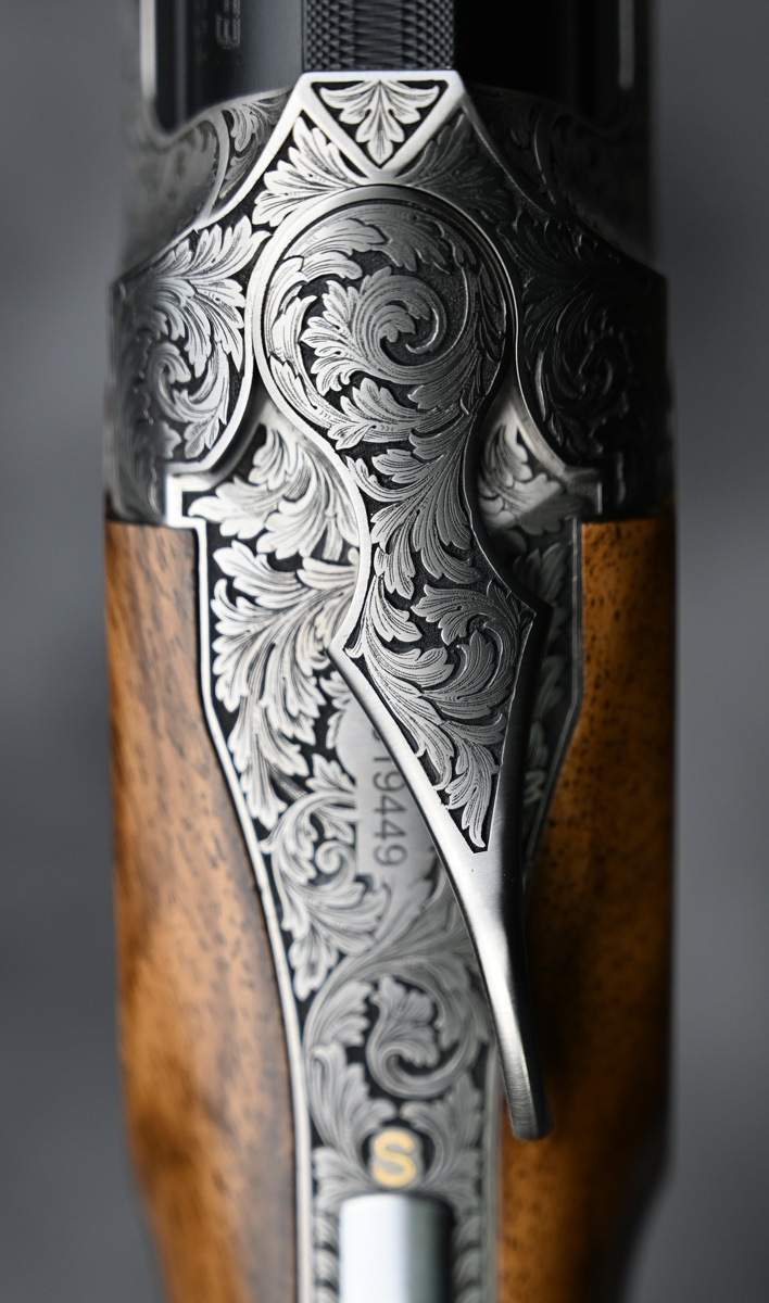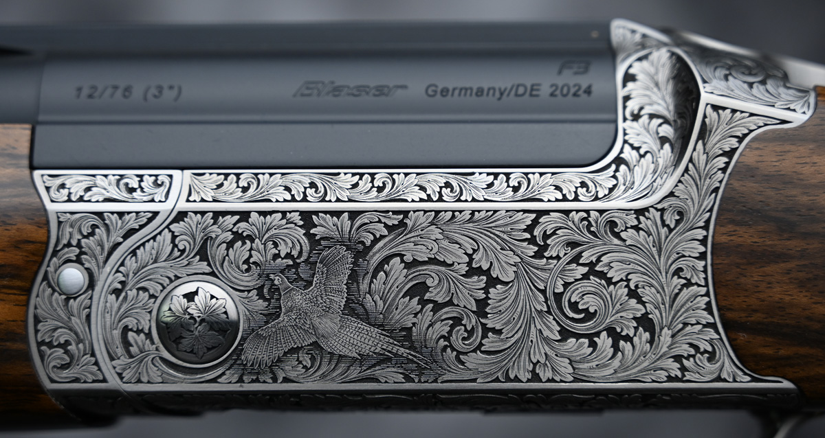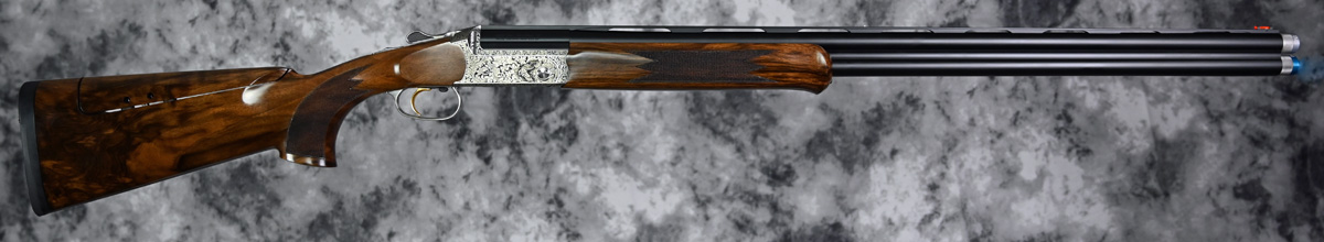 New Blaser F3 Custom Grade 1 Competition Sporter 12ga. Features factory extended choke tube 32″ barrel with flat sporting rib. Engraved receiver featuring upland and waterfowl game scenes complimenting elegant floral scroll patterns with fixed selectable trigger. Outstanding right hand Sporting stock with adjustable comb and Schnabel forend. Comes in factory leather trim case.