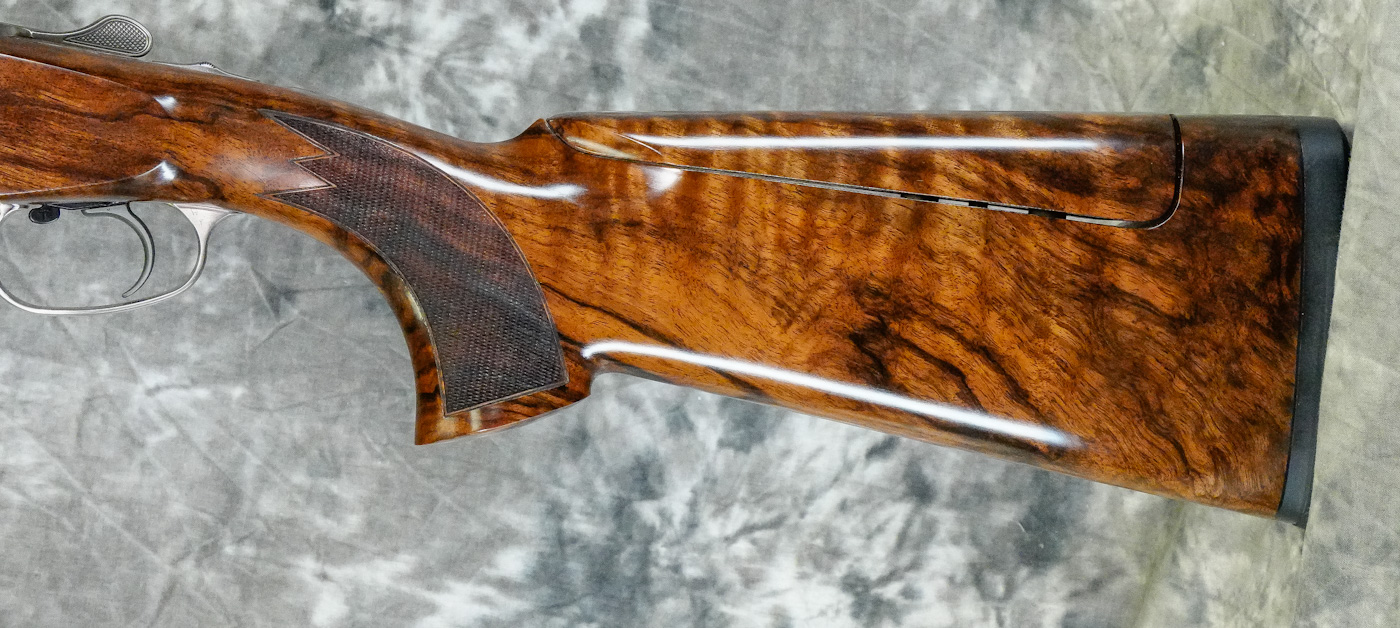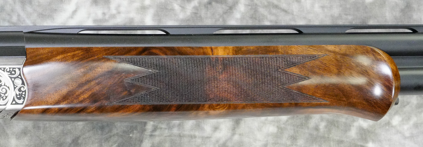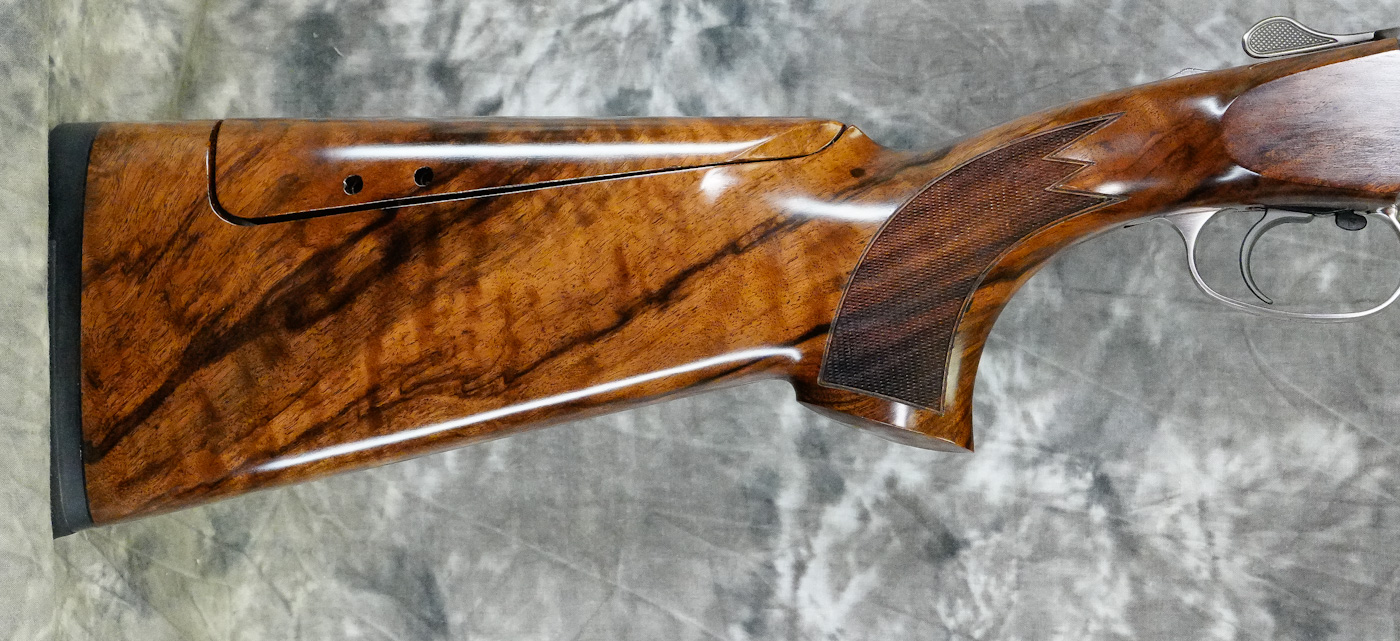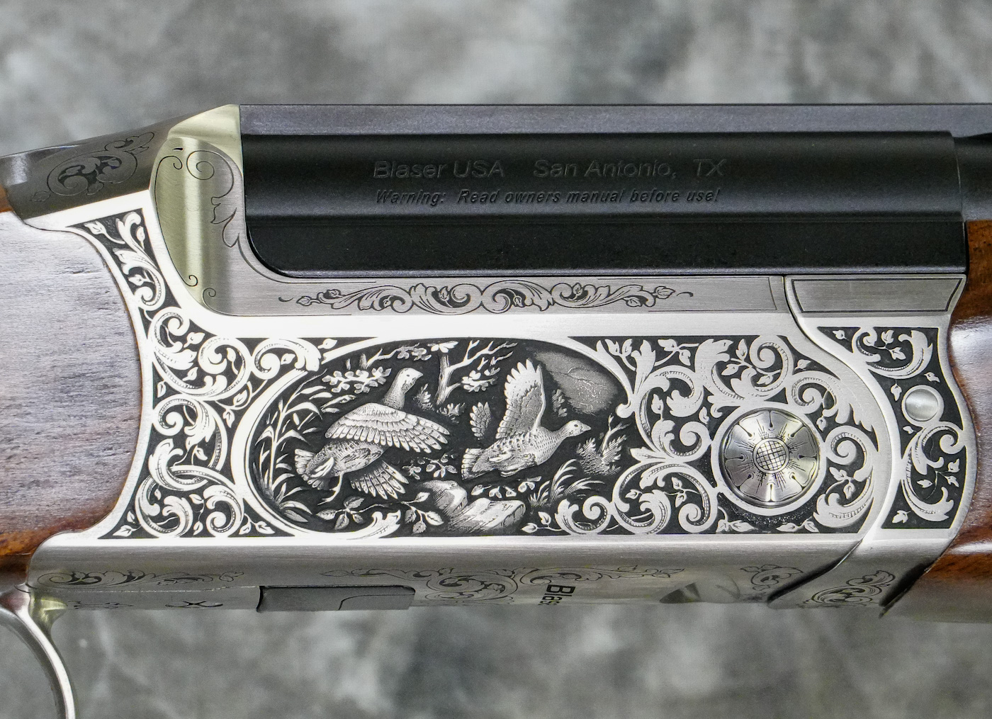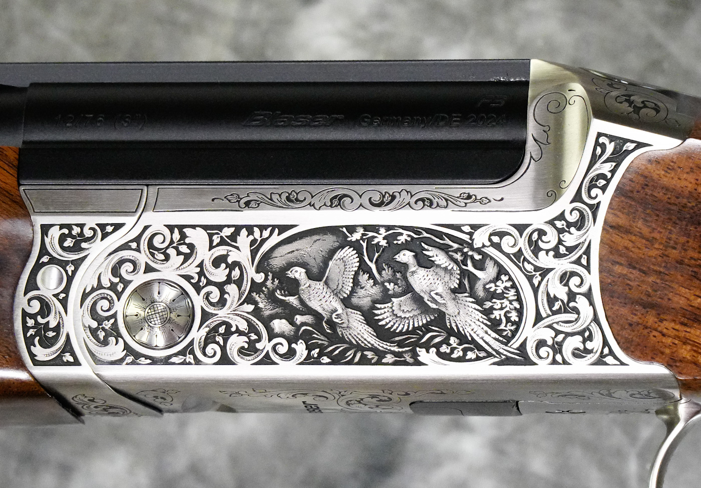 New Blaser F3 Grand Luxe Competition Sporting 12GA with 32″ factory choke tubed, flat-rib barrels. Integrated weight system. Nitride finished action with deeply engraved game scenes and scrolls. Factory adj. comb sporting stock with right-hand palmswell and schnabel forearm. Includes factory case, chokes and tools. Call 626-633-1002 for pricing.