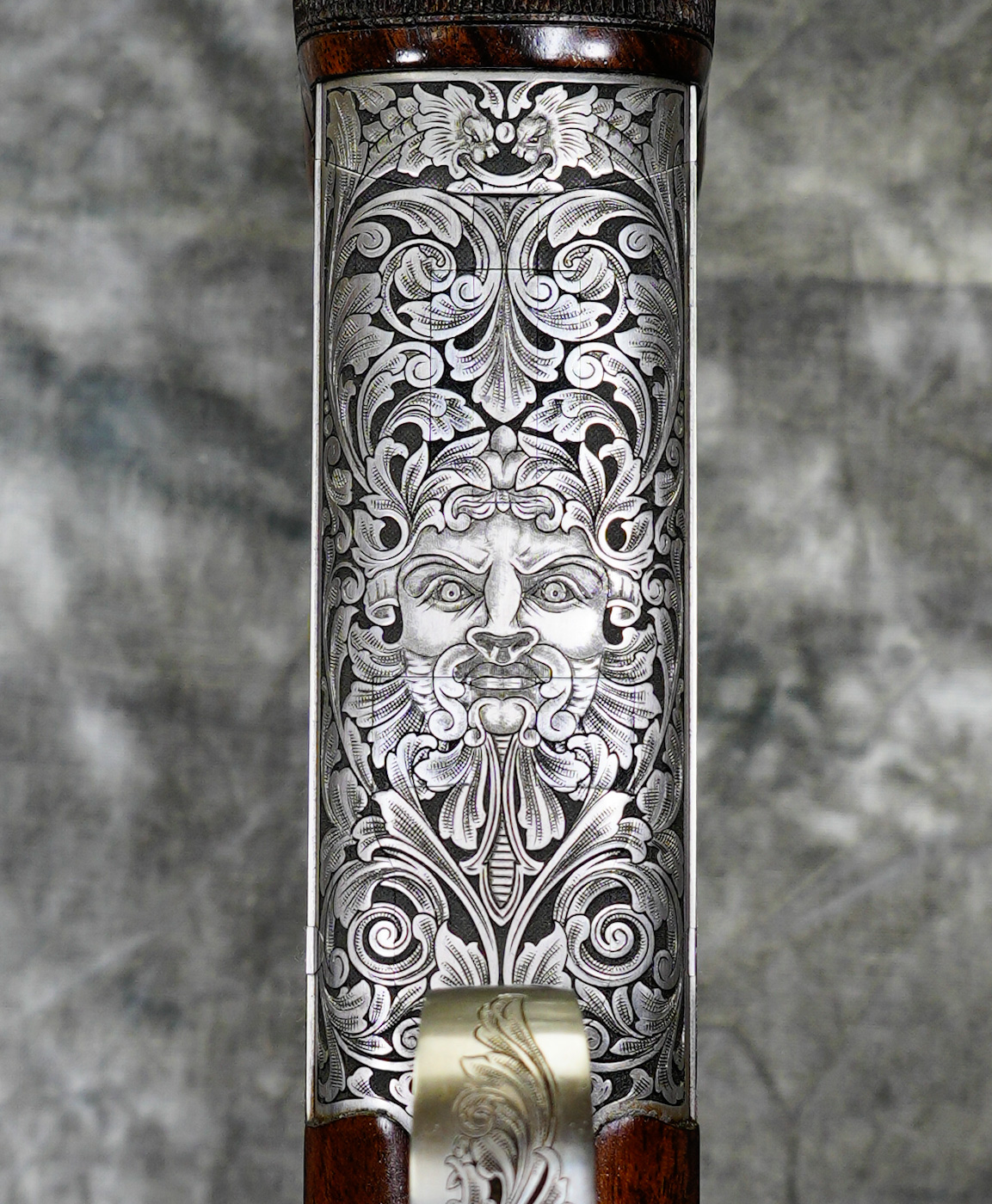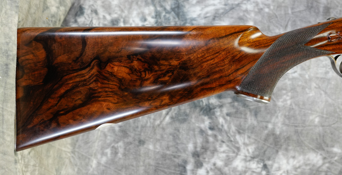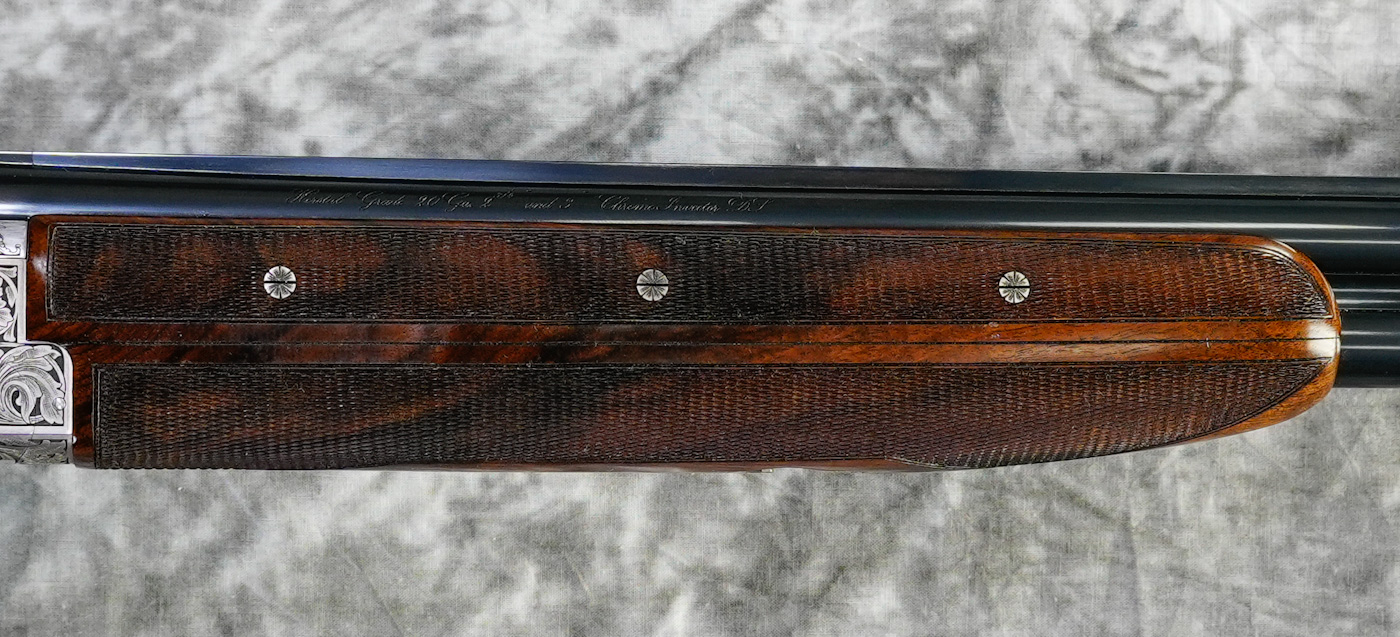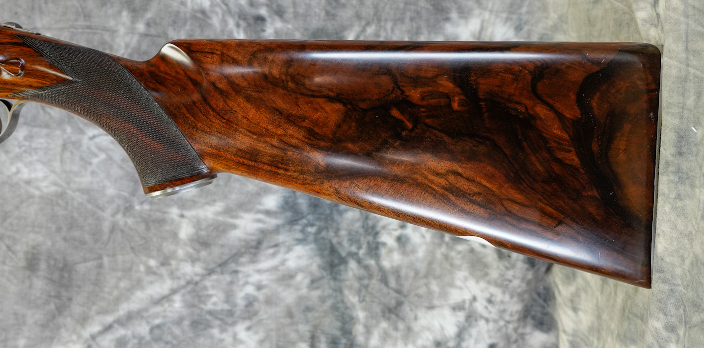 Pre-Owned Browning B15 E Grade Game Gun 20GA with 30″ Optima DS choked barrels, parallel hand-filed game rib. Nitride finished action featuring finely engraved sideplates with highly detailed scrolls, mystic scenes. Exhibition grade pistol grip stock with long-tang, grip cap and skeleton butt plate, fully checkered faux three piece forearm. Excellent condition, well cared for only minor signs of use. Includes presentation and shipping cases, chokes. Ineligible for trade-ins.