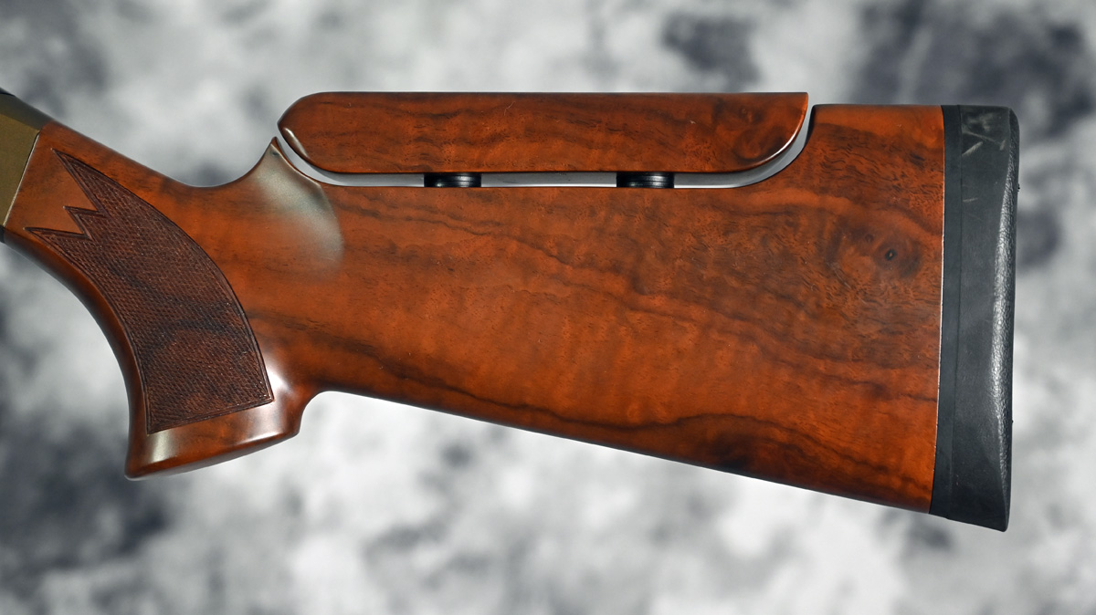 Pre-owned, in demo fired condition, Butler LF1-X Sporting 12ga. Features factory extended choke tube 29 1/2″ barrel with high adjustable rib. Steel receiver featuring bottom single action with removable trigger. Highly figured right hand Monte Carlo Sporting stock with adjustable comb and Sporting forend. Comes in factory case.