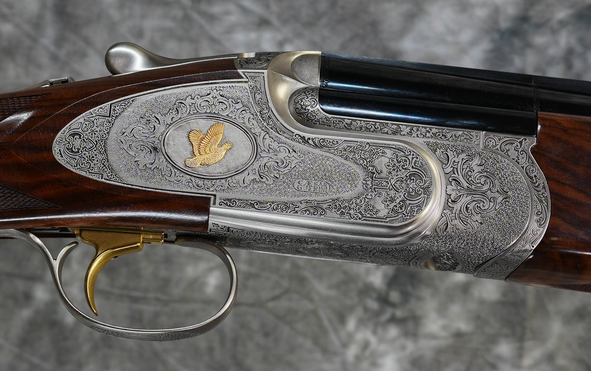 New Caesar Guerini Invictus V Sporting. 32″ barrels with factory chokes. Outstanding RH adjustable comb stock. Detailed engraved receiver with golf birds by Bottega Giovannelli. 8lbs 15oz. Cased Lifetime Warranty.