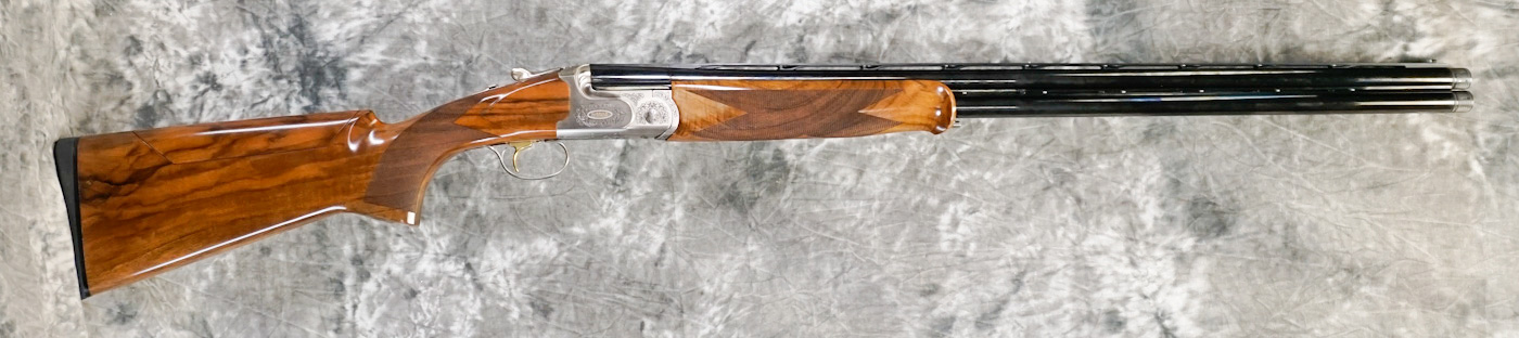 Caesar Guerini Summit Sporting 12ga Left-Hand. Features 32″ barrels with ventilated rib and extended choke tubes. Built on a durable over/under action designed for balance and long-term performance. Coin-finish receiver with subtle engraving, paired with an oil-finished Turkish walnut left-hand stock and adjustable trigger for a tailored fit.
