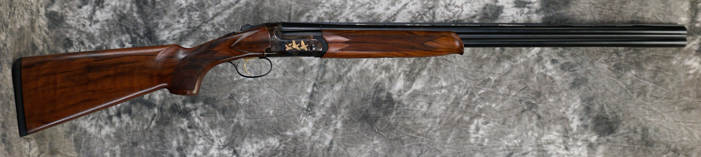 Used Fabarm Elos D2 Elite 20ga over/under with 28″ barrels. Features case color hardened receiver with gold game bird inlays. Includes factory choke set. Weight 6lbs 11oz. Good overall condition with light handling wear from normal use. Clean, lightweight shotgun that handles well, great for upland hunting or clays.