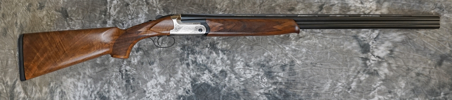 New Fabarm Elos D2 Field 28GA with 28″ factory choke tubed barrels, parallel field rib with solid side-ribs. Nickel finished action with game scene engraving, selective trigger. Factory pistol grip game stock with field forearm. Includes chokes, box. Call 626-633-1002 for pricing.