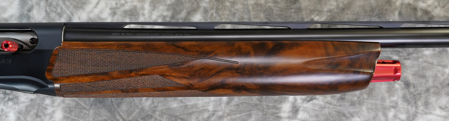 Pre-Owned Fabarm L4S Sporting 12GA with 30″ factory choke tubed barrels, black anodized action with red anodized parts, extended bolt release and bolt handle. Factory pistol grip stock with sporting forearm. Minor handling marks and minor signs of use. Includes case, chokes and tools.