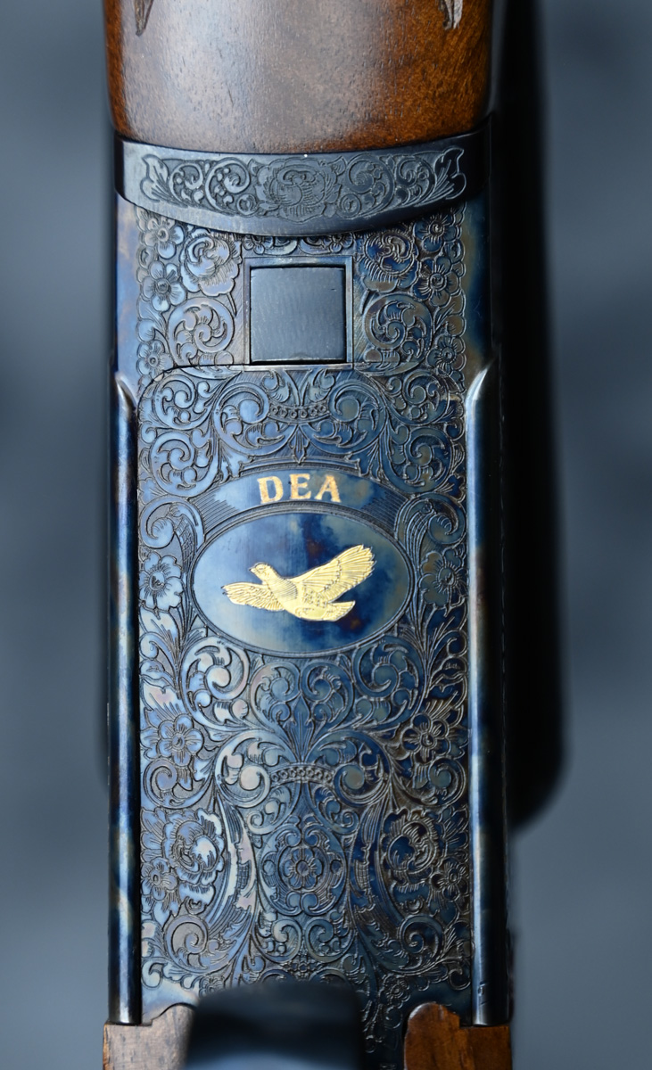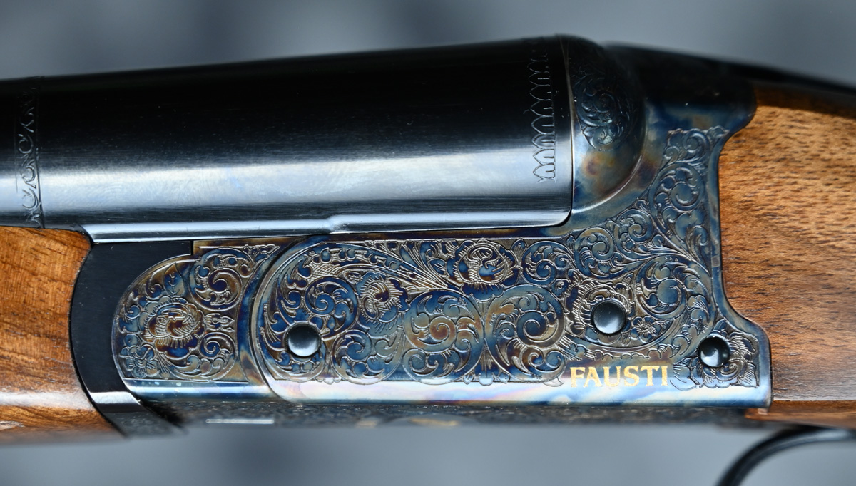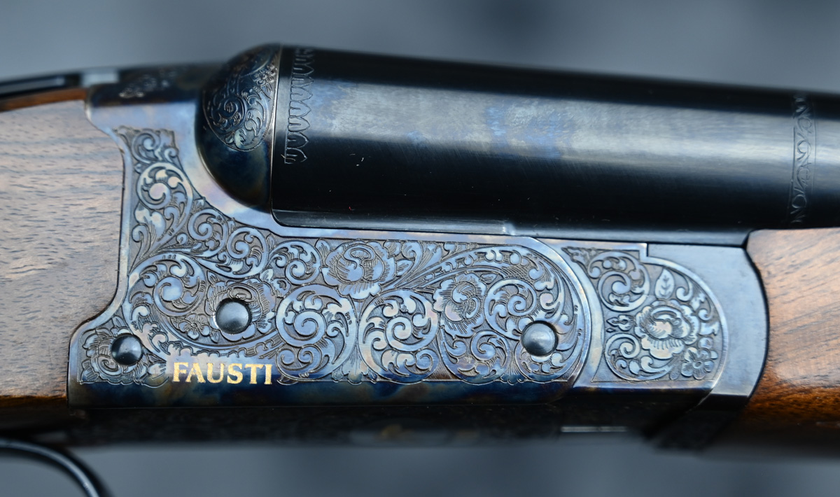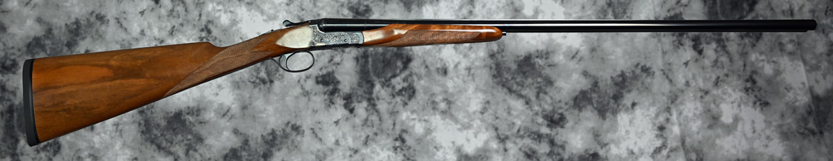 New Fausti DEA SxS 28ga. Features flush choke tube 30″ barrel with thin field rib. Case Color receiver featuring elegant scroll patterns with fixed trigger. Highly figured right hand English stock and Splinter forend. Comes in factory case.