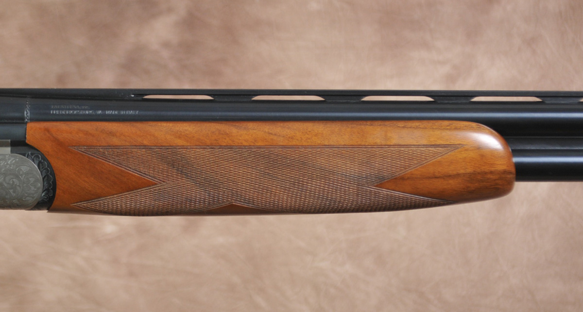 New Fausti RDX Field 12ga. Features factory flush choke tube 30″ barrels with flat field rib. Engraved receiver featuring scroll engraving with pierced top lever and selectable trigger. Highly figured right hand Prince of Wales stock with Round field forend. Comes in factory case.