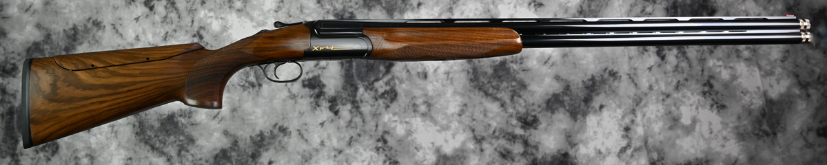 New Fausti XF4 Sporting 12ga. Features factory extended choke tube 32″ barrels with flat sporting rib. Blued receiver with gold highlights and fixed selectable trigger. Highly figured right hand Sporting stock with adjustable comb and Round forend. Comes in factory case.