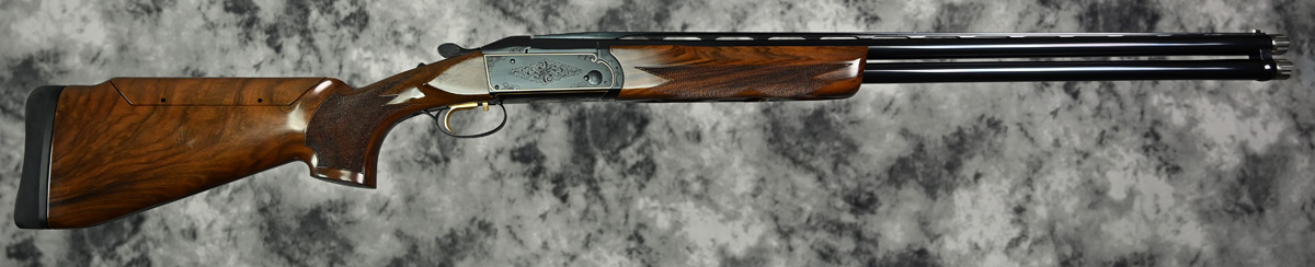 New Krieghoff K80 Skeet Special 12ga. Features factory extended titanium choke tube 20″ barrels with ramp taper rib and fitted set of Briley Ultra Light sub gauge tubes. Blued receiver featuring standard grade engraving with gold border and fixed selectable trigger. Highly figured right hand Parallel comb stock with adjustable comb and Beavertail forend. Comes in Negrini tube set case.