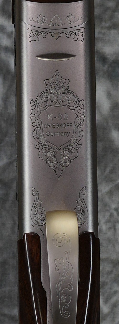New Krieghoff K-80 Sporting.  Standard Grade with 32″ factory choke tubed barrels.  Cat 1 #3 Right hand adjustable comb sporting stock with #7 Schnabel forend.  Nickel receiver.  Gun weighs 8lbs 15oz.