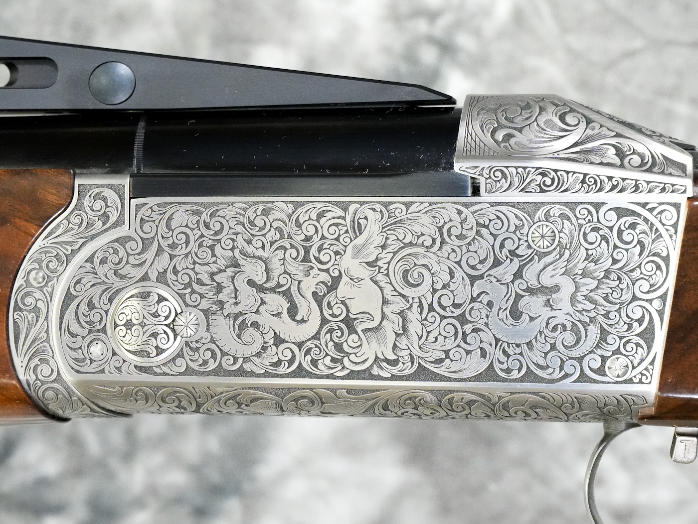 New Krieghoff K-80 Bavaria Suhl Mystic Special Pro Sporting 12GA with 32″ factory Titanium choke tubed barrels, factory adj. rib. Nitride finished action with finely engraved scrolls, Mystic motifs, fully hand-engraved by Reichle. Factory No. 3 Adj. Comb Monte Carlo Pro Sporting stock with schnabel forearm. Includes factory case, chokes and tools. Call 626-633-1002 for pricing.