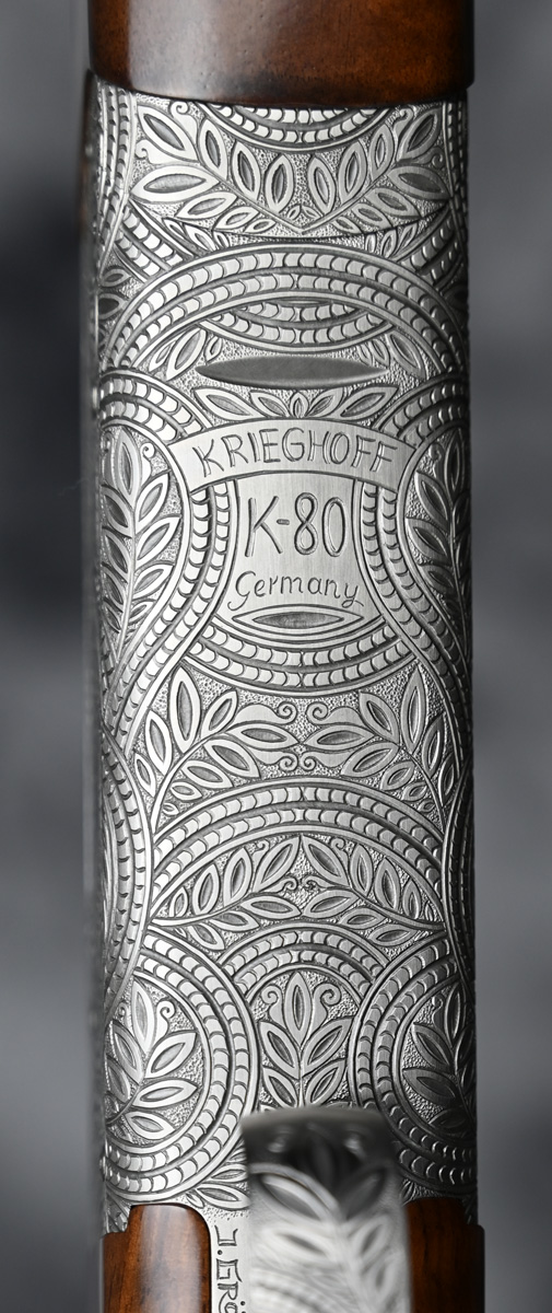 New Krieghoff K80 Parcour X 12ga. Features factory extended thin wall choke tube 32″ barrels with flat Parcour X rib. Engraved receiver featuring Laurel Scroll engraving pattern with fixed selectable trigger. Outstanding right hand Parcour stock with adjustable comb and Parcour forend. Comes in factory leather trim case.