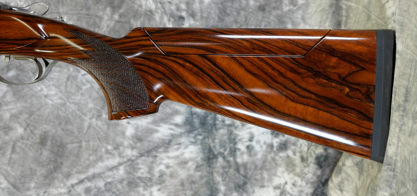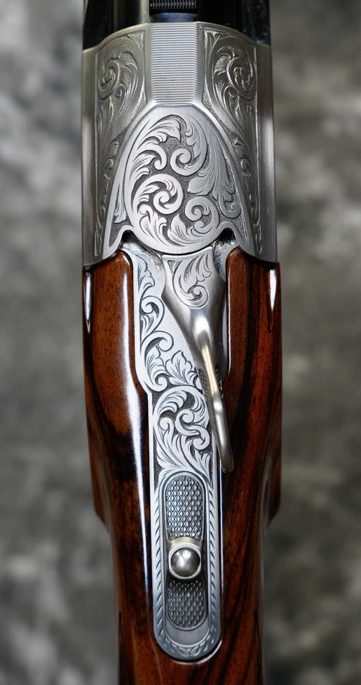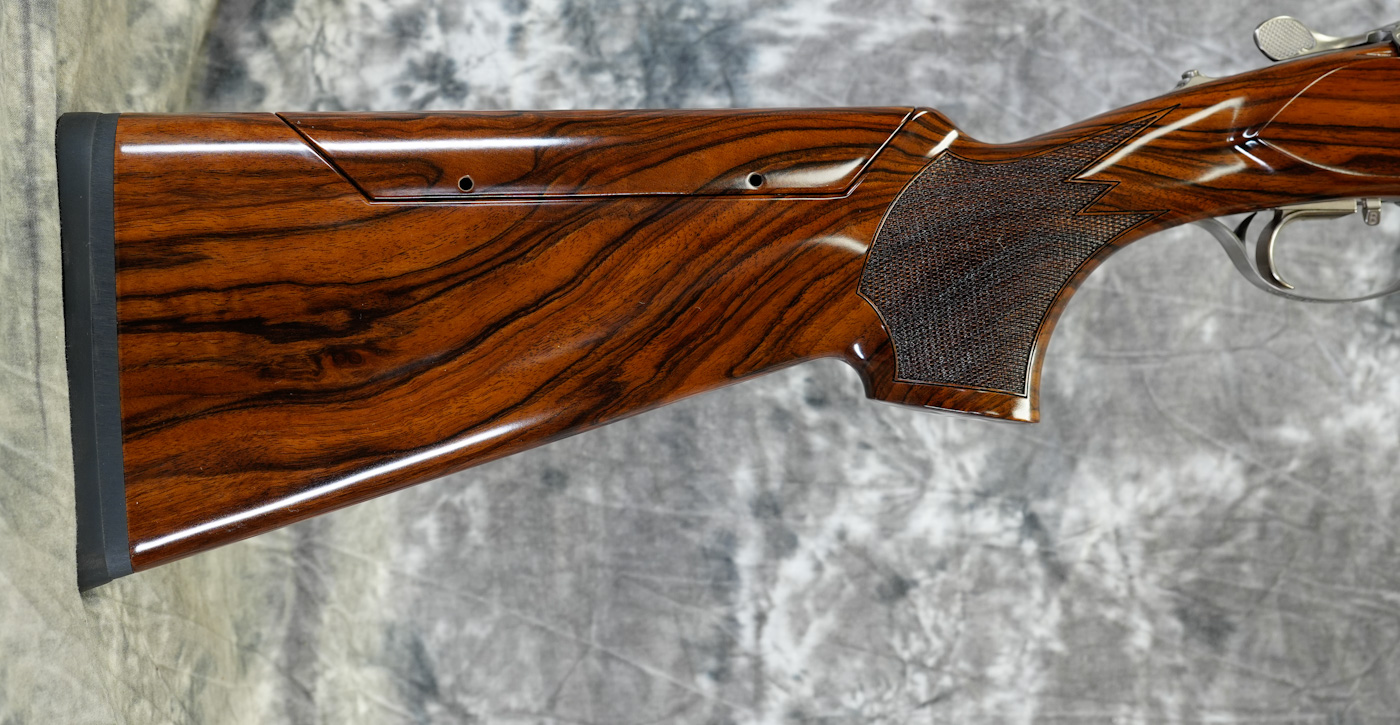 New Krieghoff K-80 San Remo Parcour X Sporting 12GA with 32″ KTW Pro Choked barrels. Nitride finished action featuring deeply engraved scrolls and game scenes by German Master Engraver Kropfitsch Factory pistol grip sporting stock with right-hand palmswell, factory adjustable comb and slim sporting forearm. Includes factory chokes, tools and case. Call 626-633-1002 for pricing.