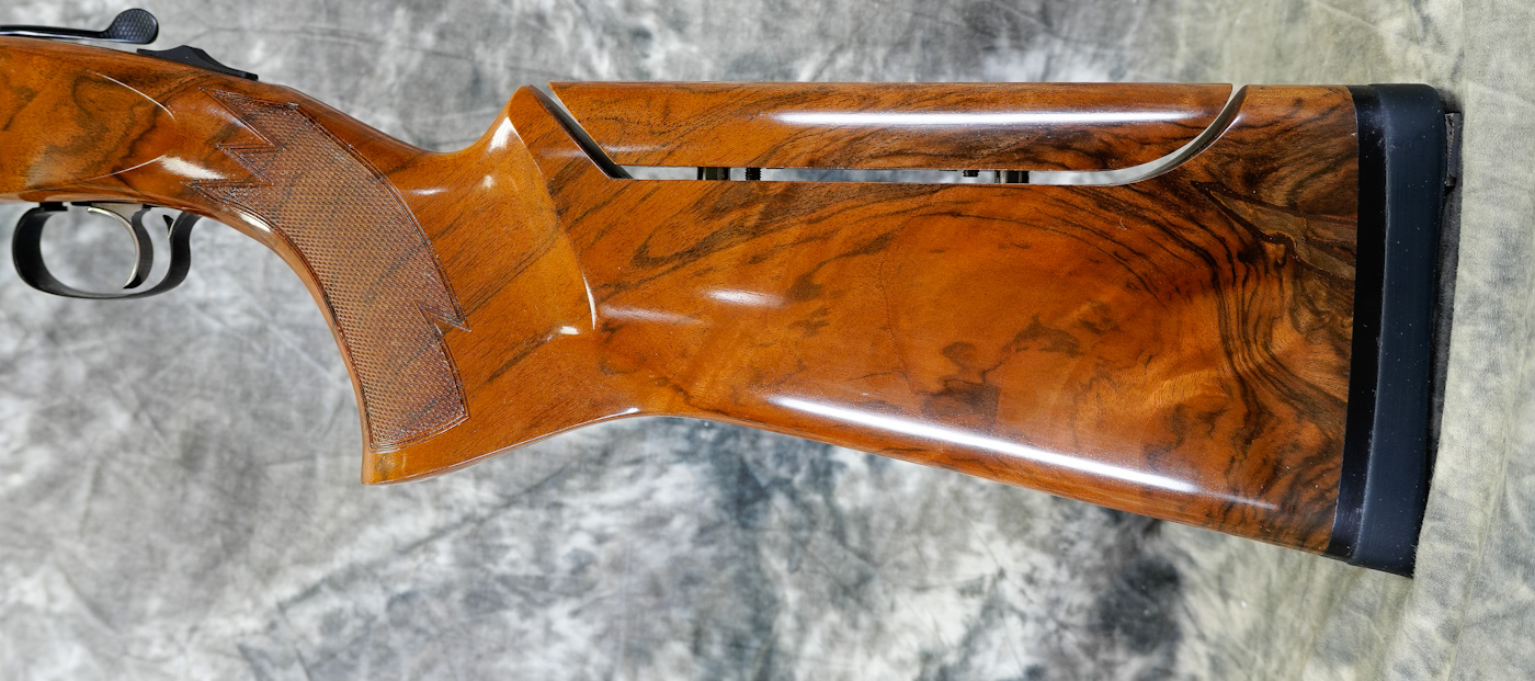 New Longthorne 3001 Victory Sporting 12GA with 32″ factory choke tubed barrels, blued action. Factory selective, adjustable trigger. Pistol grip sporting stock with factory adjustable comb and slim beavertail forearm. Featuring monolithic barrels manufactured out of a single billet of steel contributing to excellent barrel regulation and weight distribution. Includes factory case, chokes and tools. Call 626-633-1002 for pricing.
