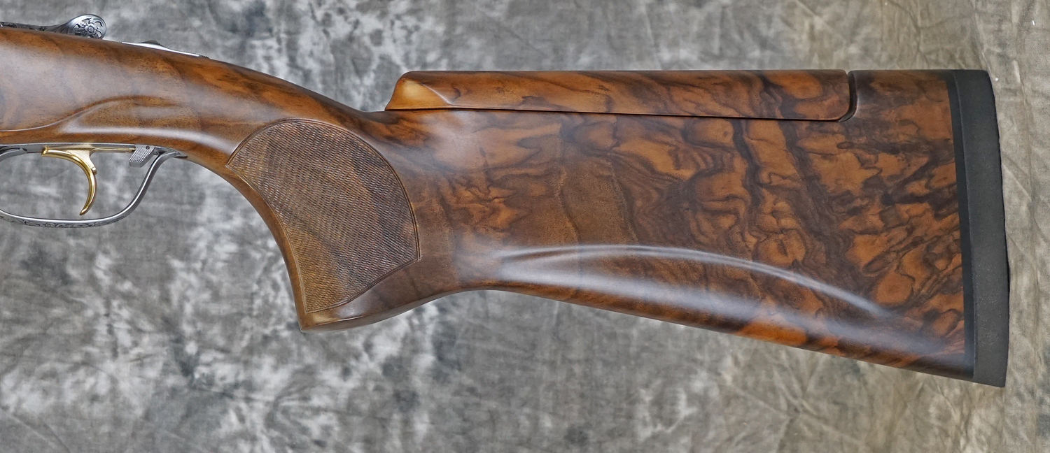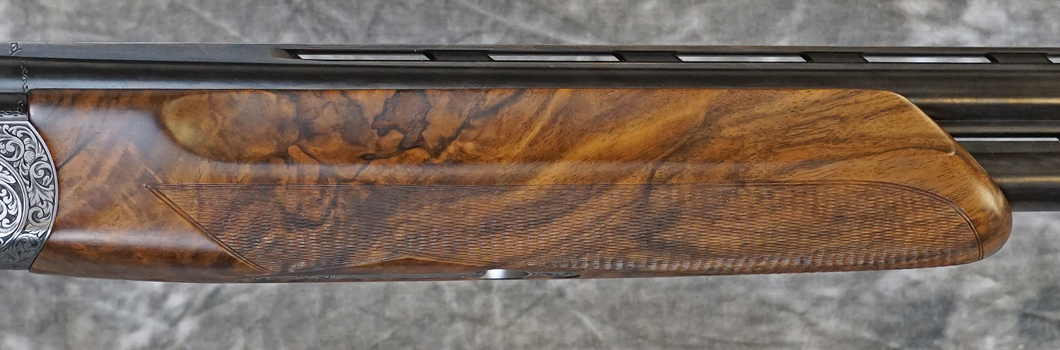 New Perazzi High Tech 20 SC3 Sporting 20GA with 33″ fixed choke (.016/.024) barrels, 10×7 flat-tapered tramline rib. Coin finished action featuring full coverage, deeply hand-engraved scrolls by Giovanelli, pierced top-lever. Factory removable, selective flat-spring trigger. Factory adj. comb sporting stock with right-hand palmswell and HT sporting forearm. Includes factory case, tools. Call 626-633-1002 for pricing.