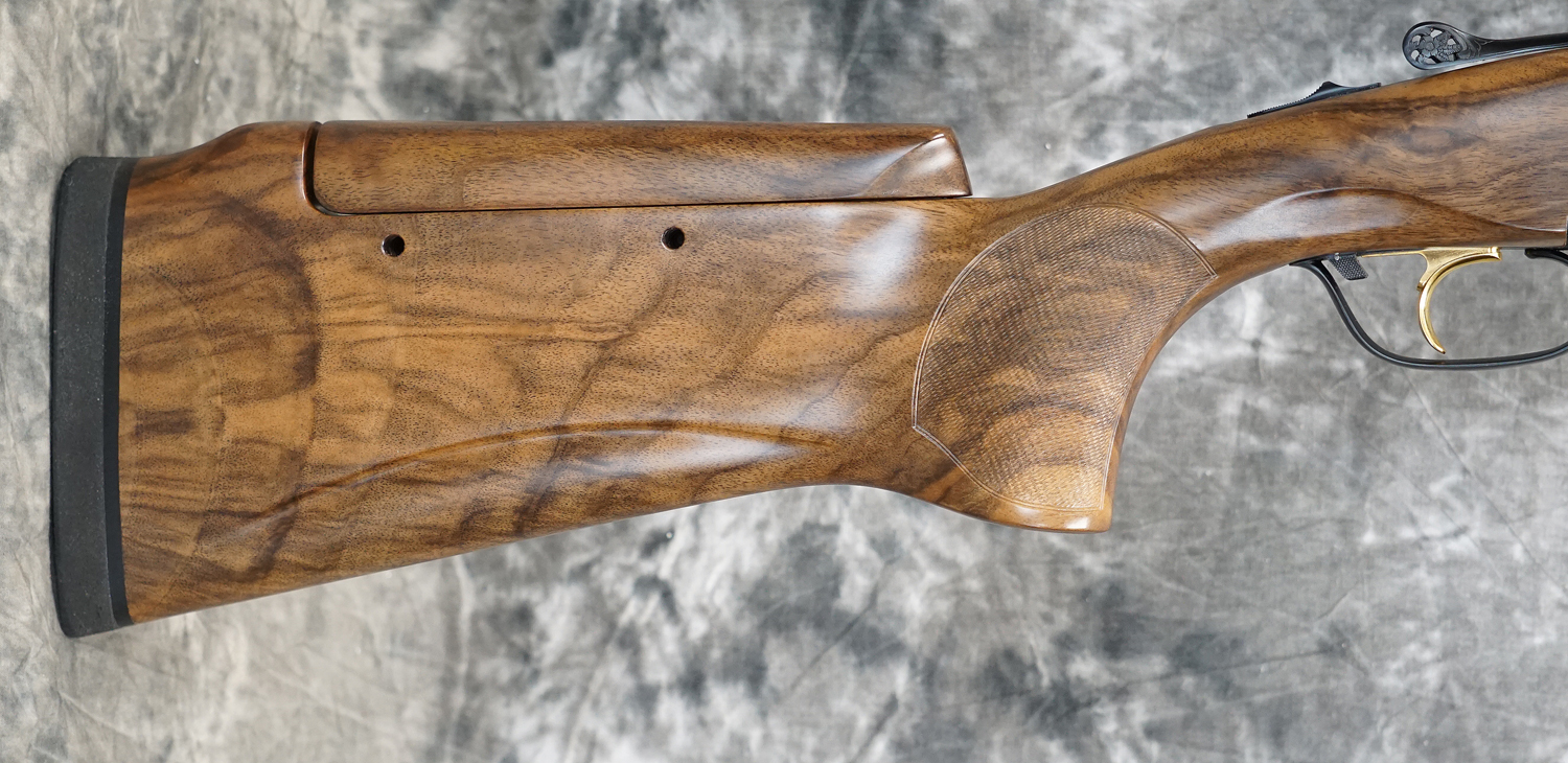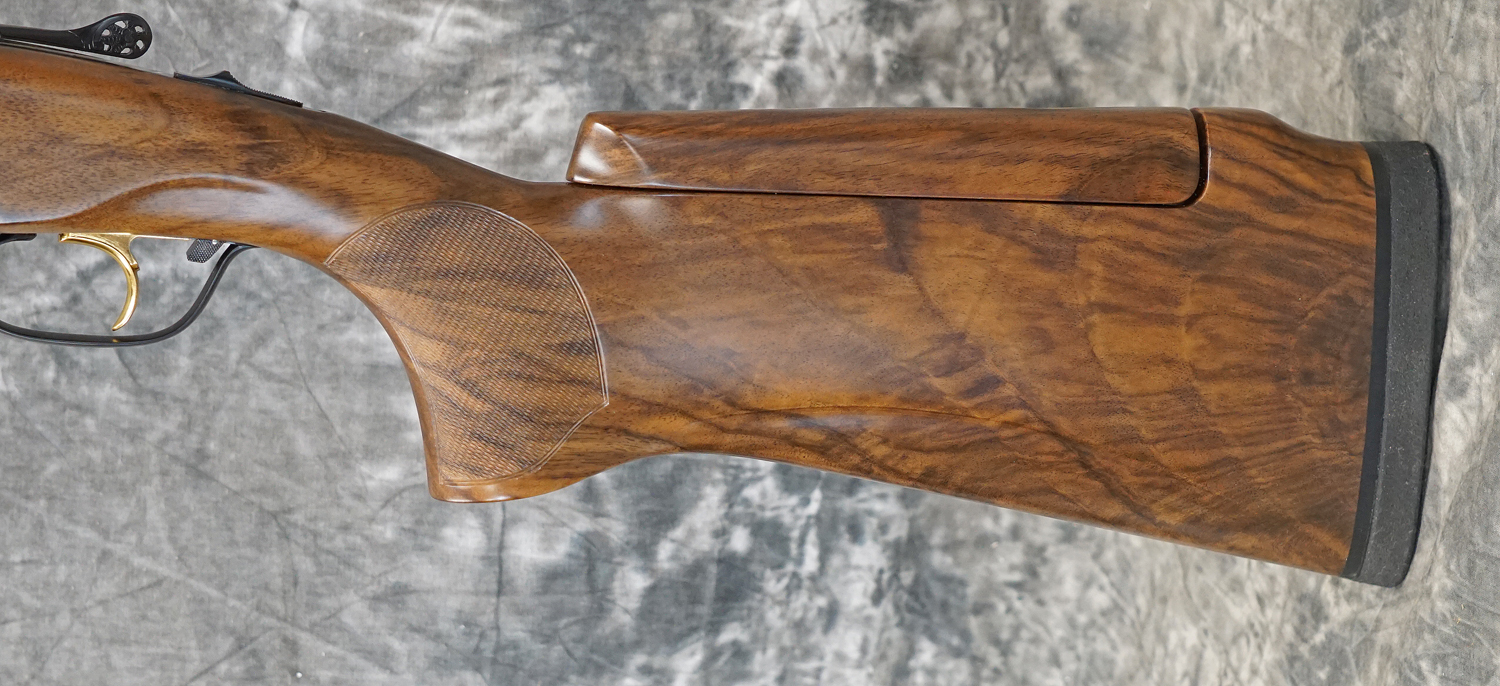 New Perazzi High Tech Lusso Sporting 12GA with 31 1/2″ factory choke-tubed barrels, 11×7 flat-tapered tramline rib. Blued action with factory removable, selective flat-spring trigger group, fully hand-engraved scrolls, ribbons and florals with pierced top-lever. Factory Monte Carlo adj. comb sporting stock with right-hand palmswell, fully checkered PSA Pro forearm. Includes factory case, chokes and tools. Call 626-633-1002 for pricing.