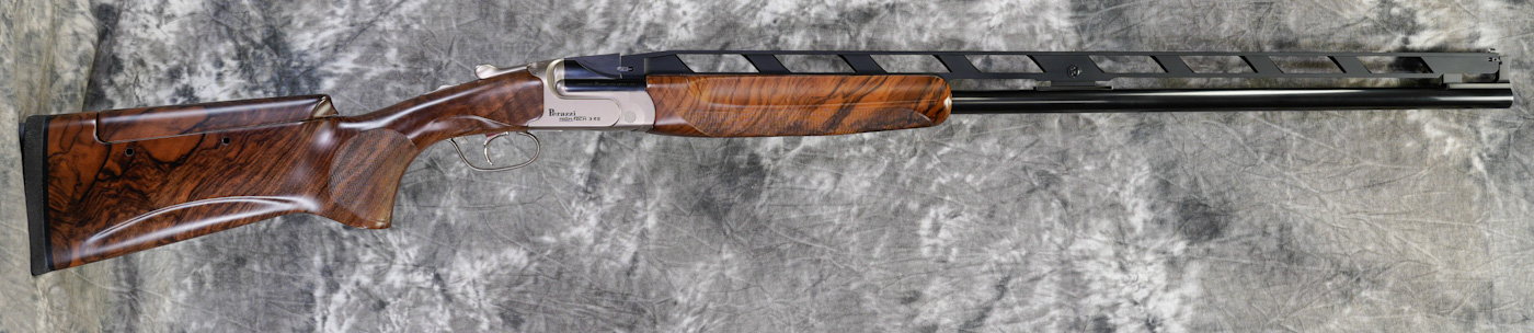New Perazzi High Tech RS 3 All Clay Sports Unsingle Combo with 34″ fixed choke (Full) 11×7 tapered 3-position adjustable rib, additional 31 1/2″ factory choke-tubed 3-position adjustable rib O/U barrels. Nickel finished action with removable, selective coil spring trigger. Highly figured SC2 grade factory pistol grip sporting stock with right-hand palmswell, factory adj. comb and PSA Pro forearm. Includes factory case, chokes and tools. Call 626-633-1002 for pricing.