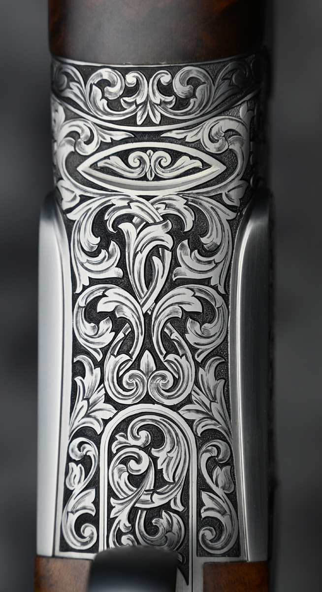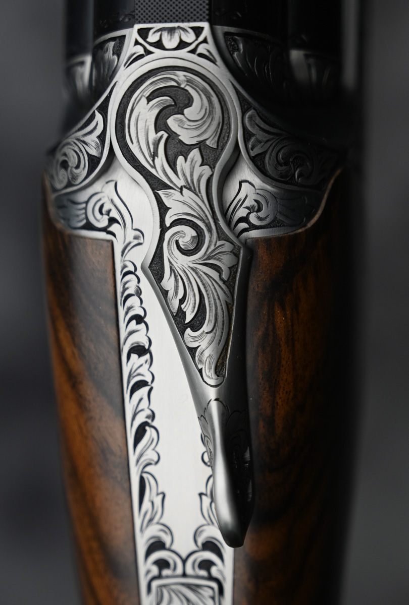 New Perazzi HT RS Trap Combo 12ga. Features fixed choke full 34″ unsingle barrel with 4 notch adjustable rib, fixed choke modified and full 31 1/2″ over under barrel with 4 notch adjustable rib. Engraved receiver featuring deep bold scroll patterns with removable trigger and pierced top lever. Highly figured right hand Monte Carlo Trap stock with adjustable comb and semi beavertail forend. Comes in factory two barrel case.