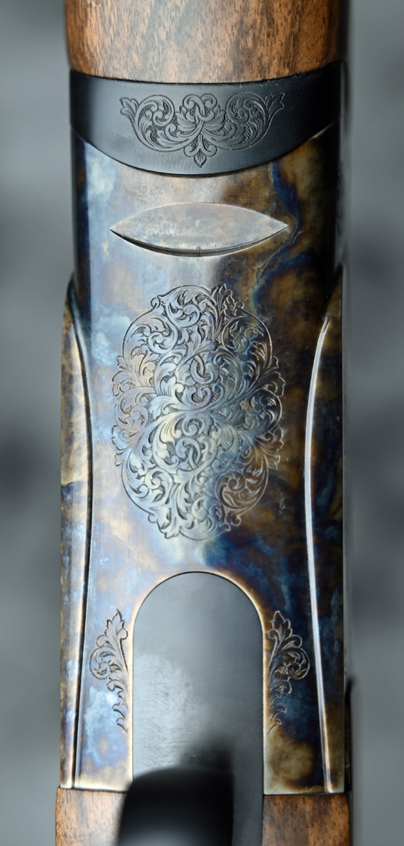 New Perazzi MX20 Field 2 barrel set 20ga/ 28ga. Both barrels configured identically featuring fixed choke improved cylinder and modified 30″ barrels with flat game rib. Case color engraved receiver featuring Lusso engraving pattern with fixed selectable trigger and pierced top lever. Highly figured right hand Pistol grip stock with thin field forend. Comes in factory case.