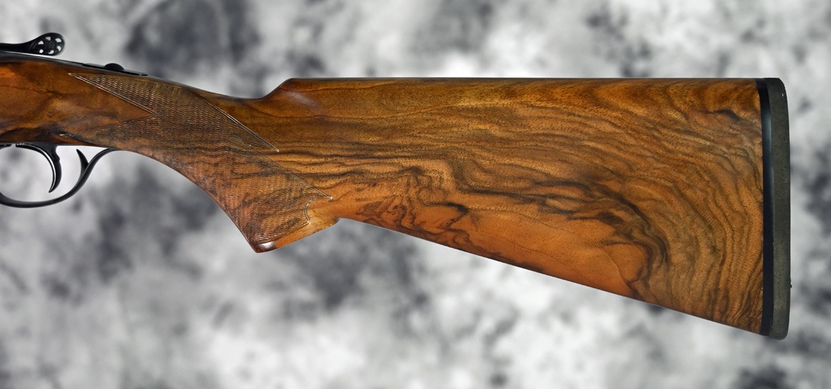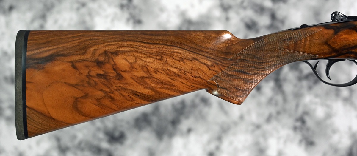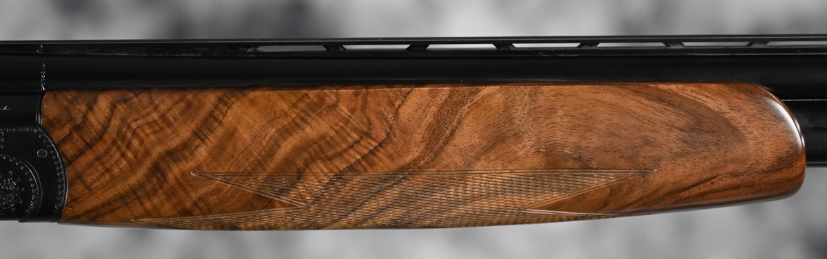 New Perazzi MX20 Sporting 20ga. Features fixed choke improved cylinder and modified 30″ barrel with flat field rib. Blued receiver with pierced top lever and fixed selectable trigger. Highly figured right hand Pistol stock with Euro forend. Comes in factory case.