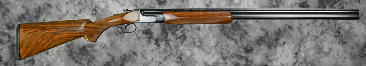 New Perazzi MX28B 28ga. Features Choke Tubed 29 1/2″ barrels with thin rib. blued receiver with fixed selectable trigger. Highly figured right hand Pistol grip stock with Euro Fluted forend. Comes in factory case.