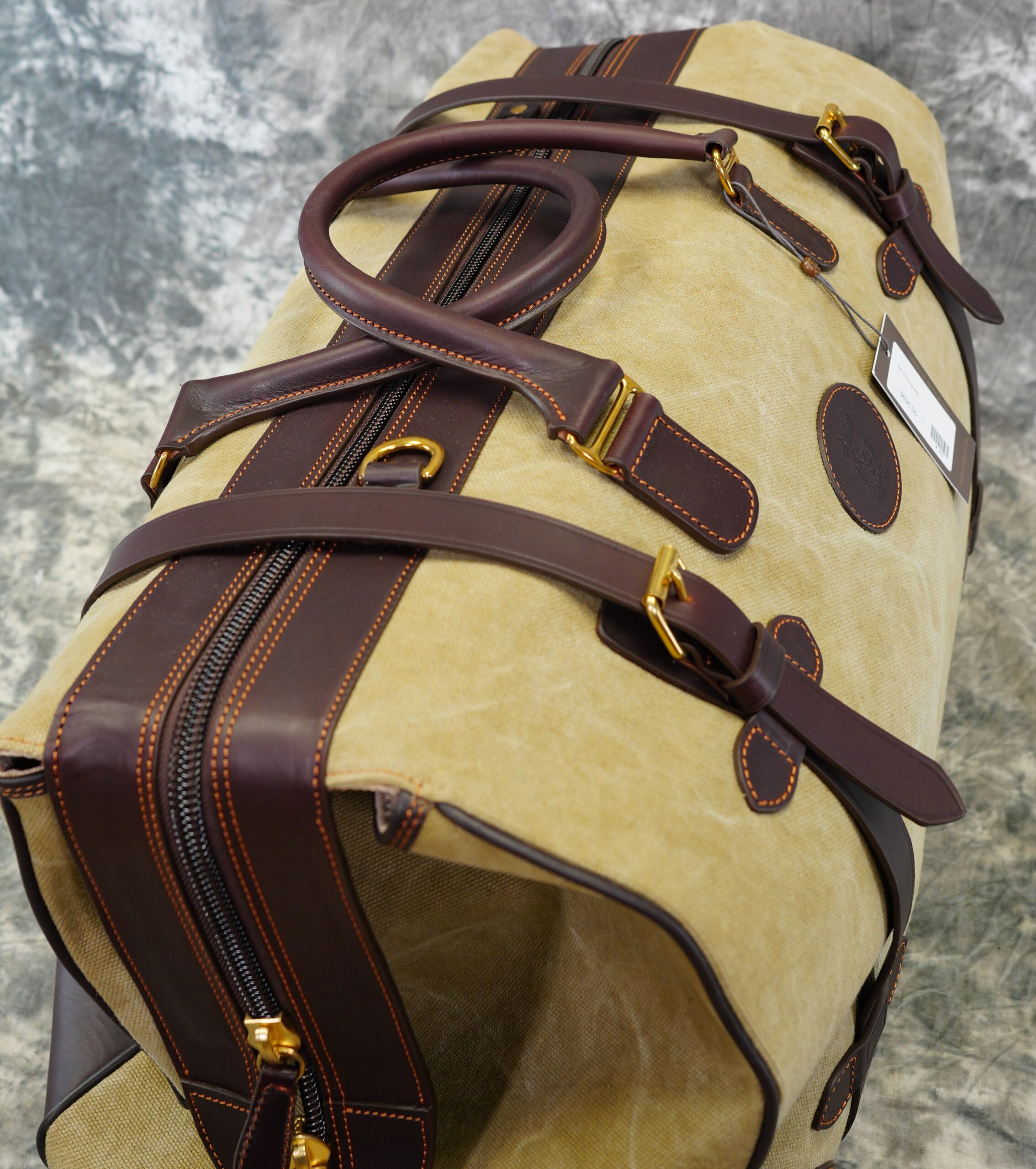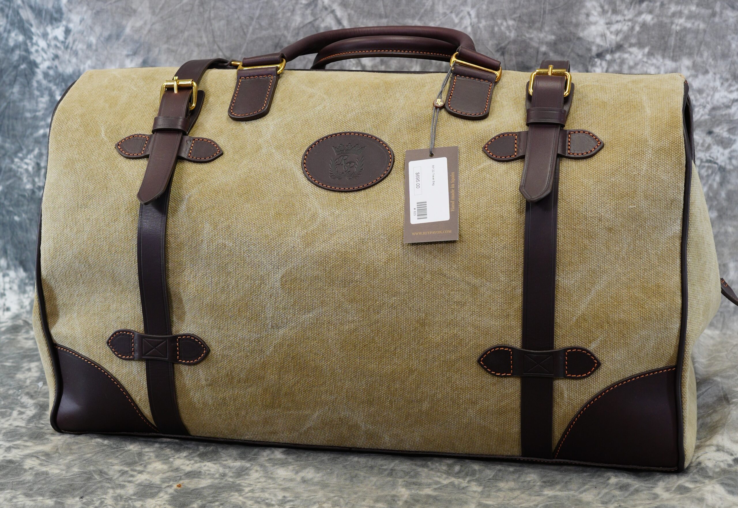 Rey Pavon “22 Travel Bag”. Large Canvas & leather Bag made by Rey Pavon in Spain.  22″ Long, 12″ High, 10″ wide