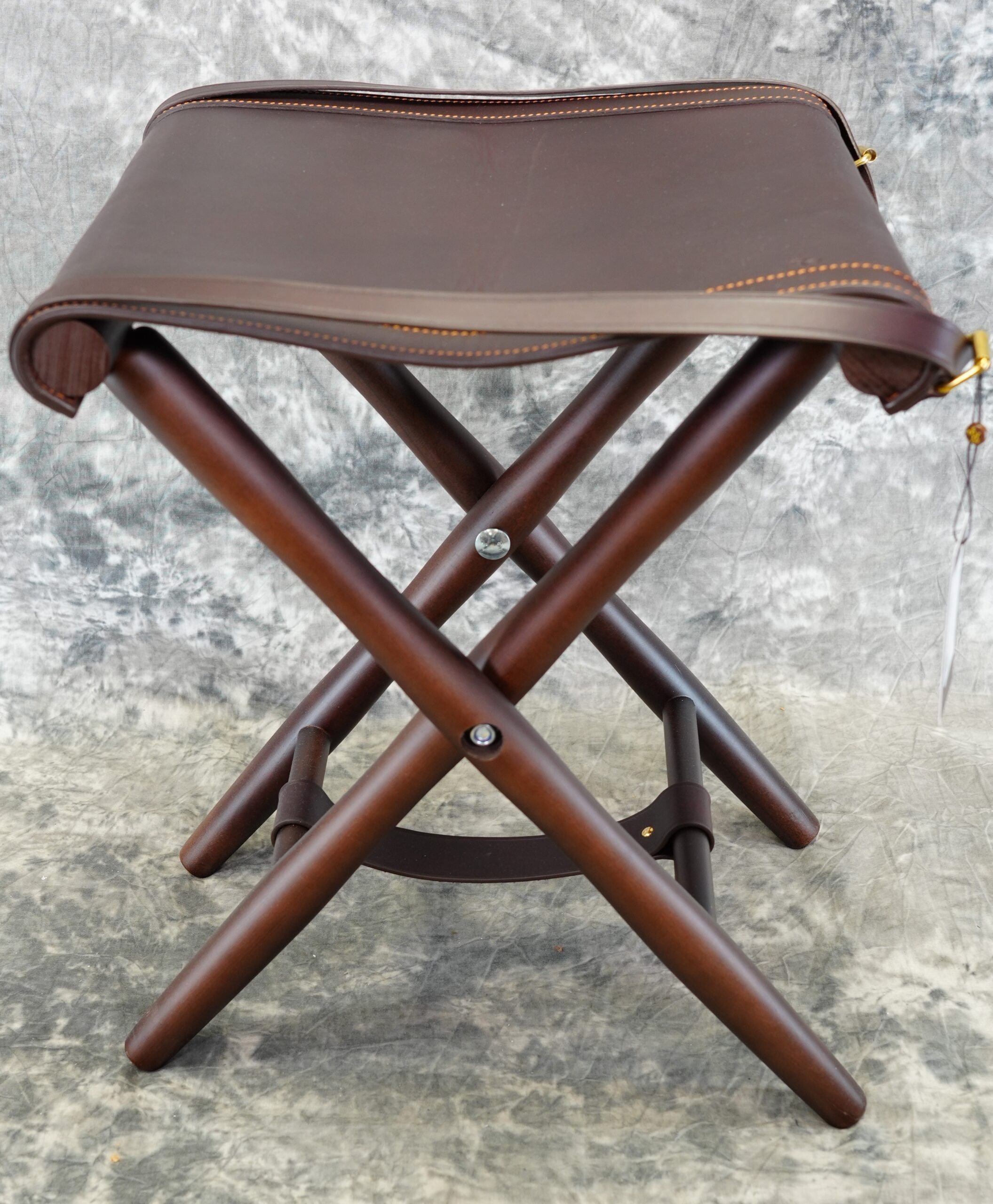Rey Pavon Folding Field stool. Leather & Wood. Made by Rey Pavon in Spain to the Highest standards.