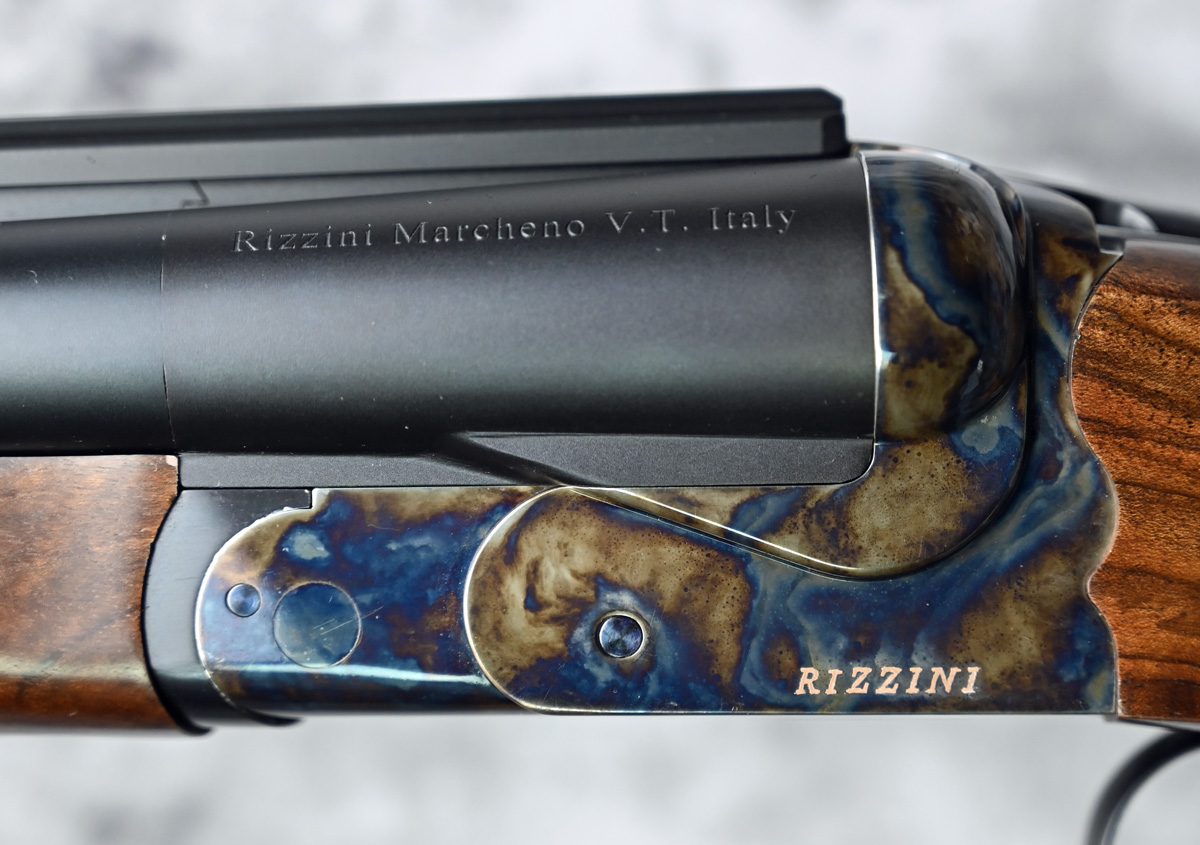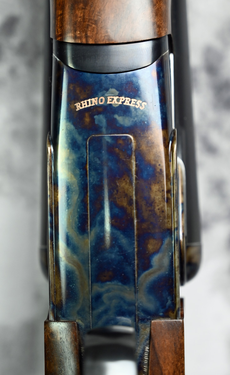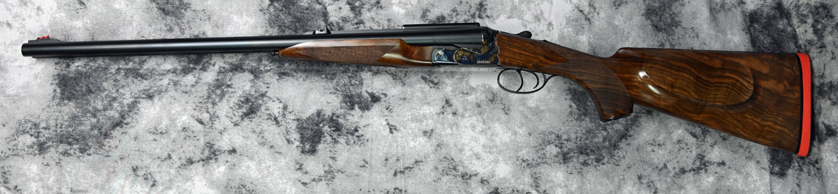 New Rizzini Nitro Express double rifle .470 NE. Features fixed iron sight and Optilock style rail mount. Case color receiver with double triggers. Highly figured right hand Pistol grip stock with cheek swell and Beavertail forend. Comes in factory case.