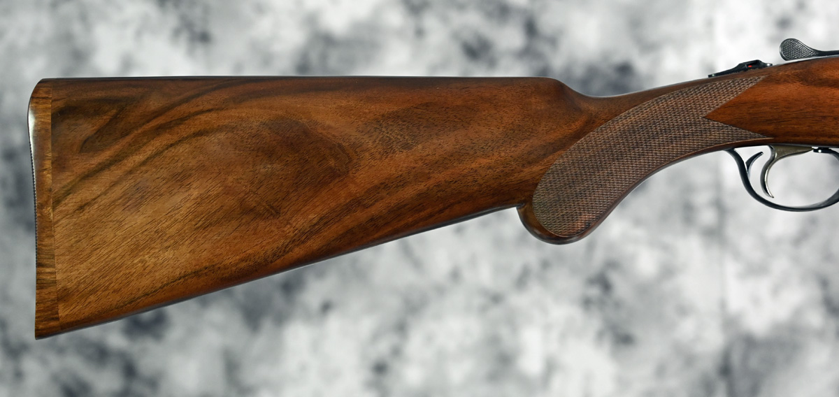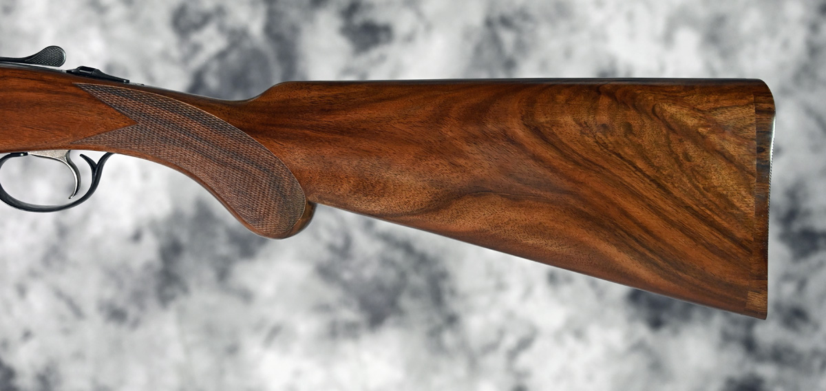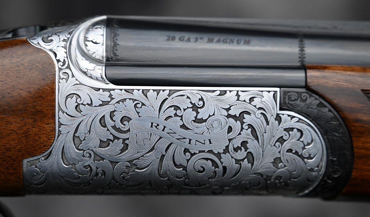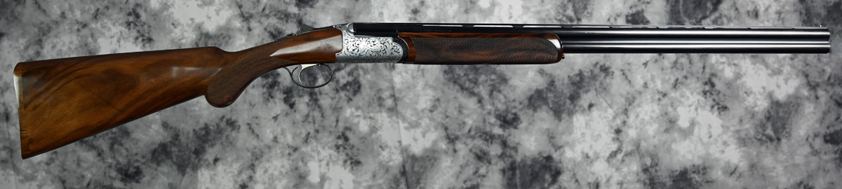 New Rizzini Round Body EM Field 20ga. Features flush choke tube 29″ barrels with flat field rib. Engraved receiver featuring elegant scroll pattern engraving with fixed selectable trigger. Highly figured right hand Prince of Wales stock and Round forend. Comes in factory case.