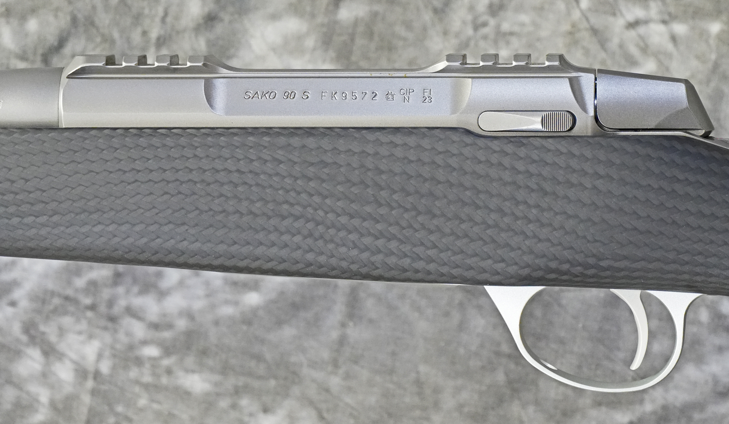 New Sako 90 Peak Stainless chambered in .308 Win, featuring 20″ fluted, threaded stainless barrel and action with Picatinny rail. Factory carbon fiber stock. Includes box, tools.